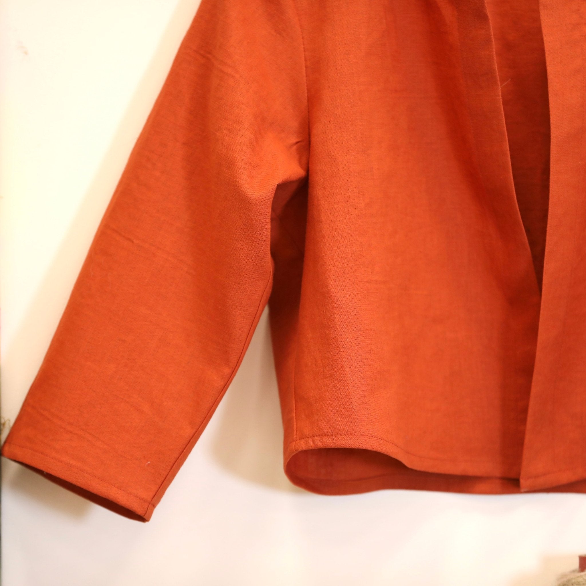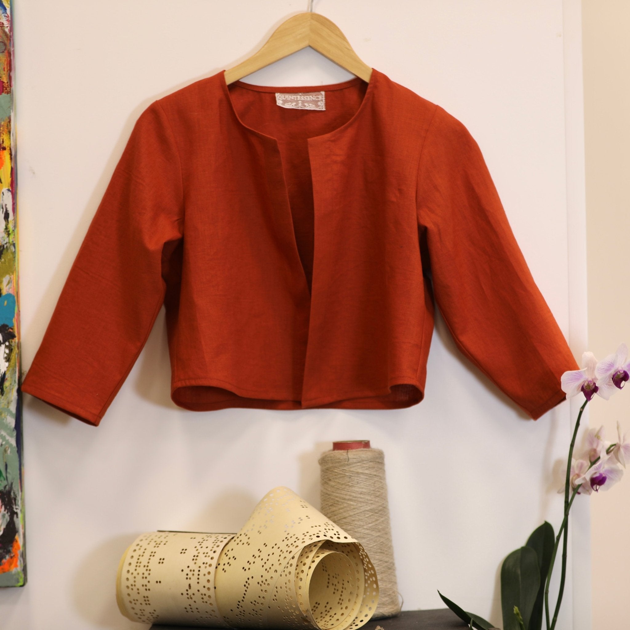 Confectionné dans un lin terracotta 100 % lin, léger et fluide, ce boléro offre un tombé naturel et agréable à porter. Le lin apporte fraîcheur et authenticité, tandis que la teinte terracotta, chaleureuse et profonde, illumine la silhouette avec caractère.