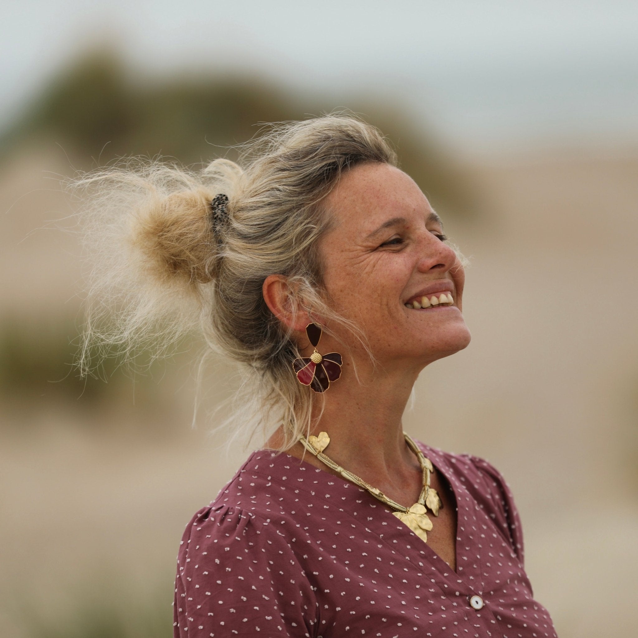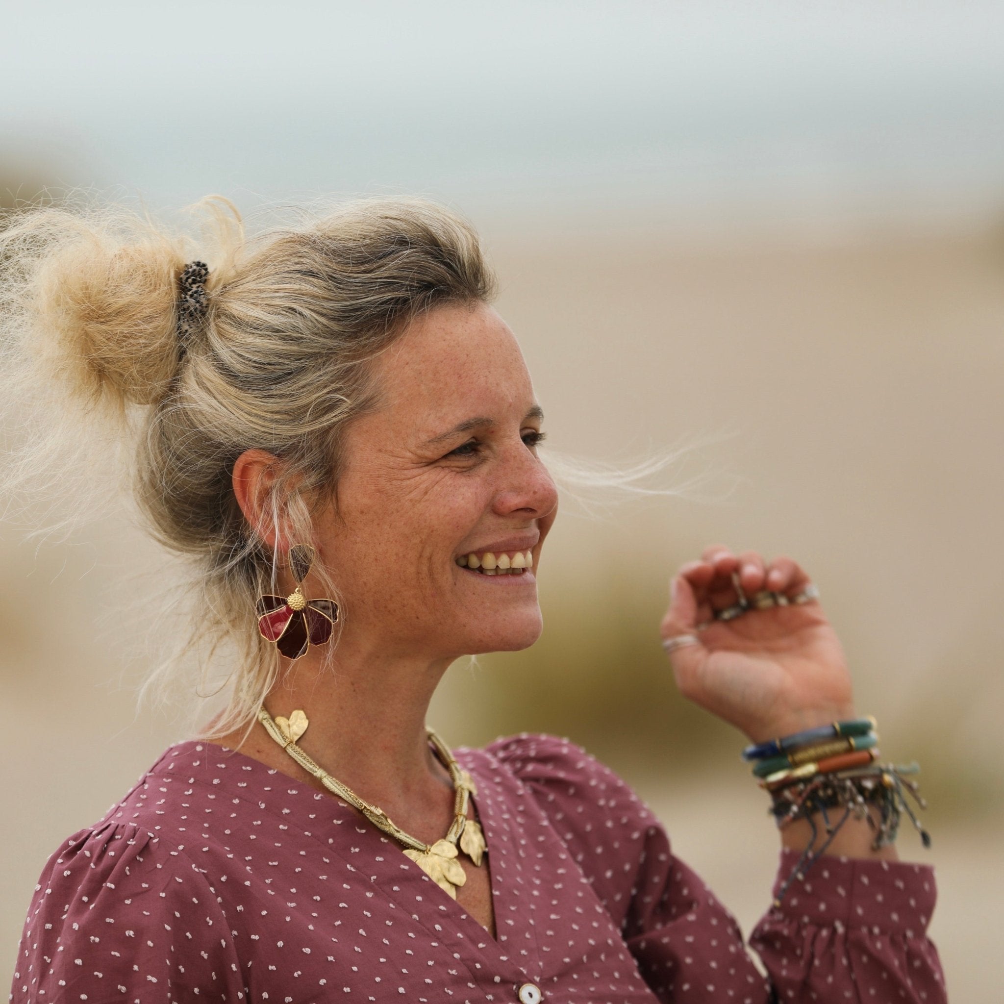 Boucles d’oreilles Camélia – Émaillées Grenat