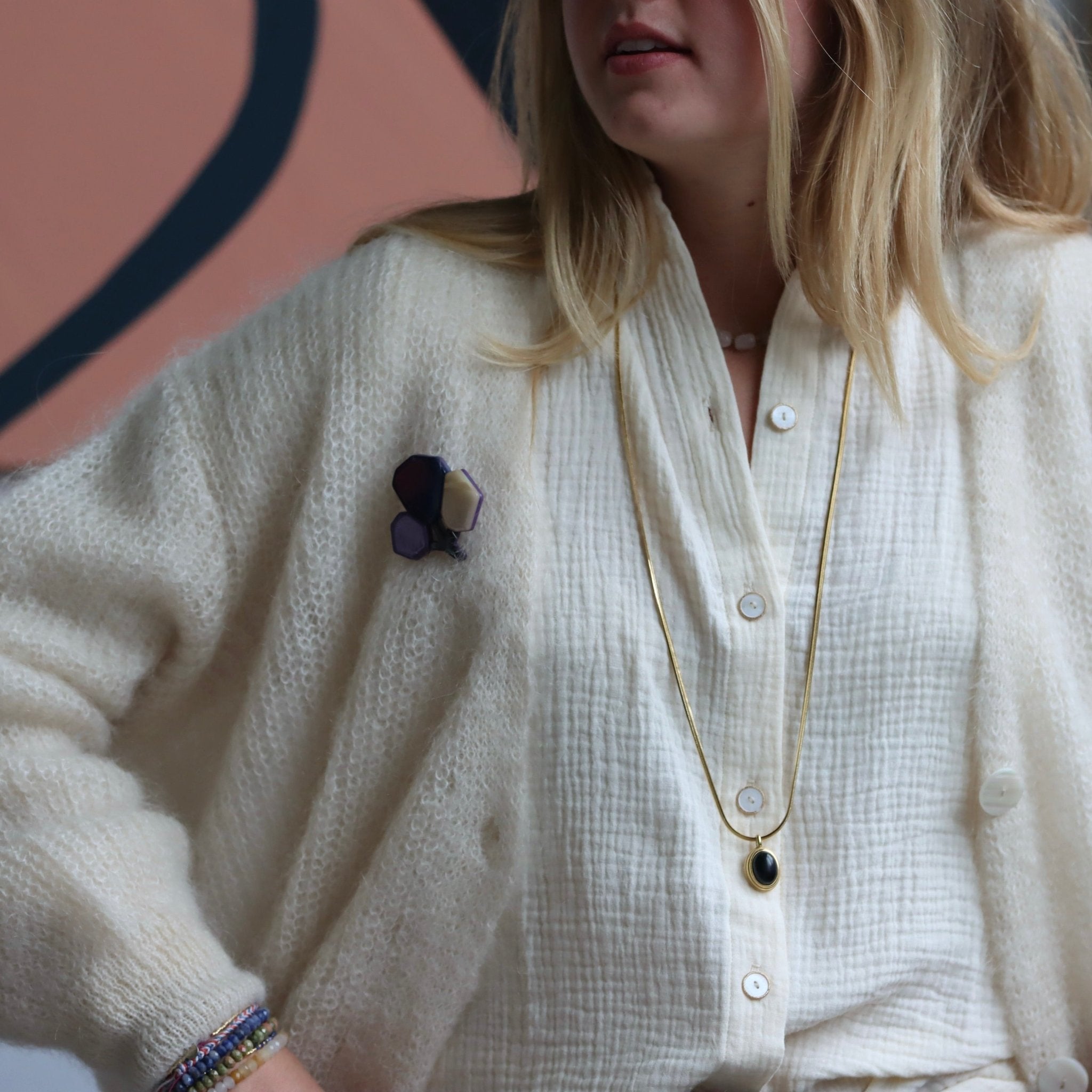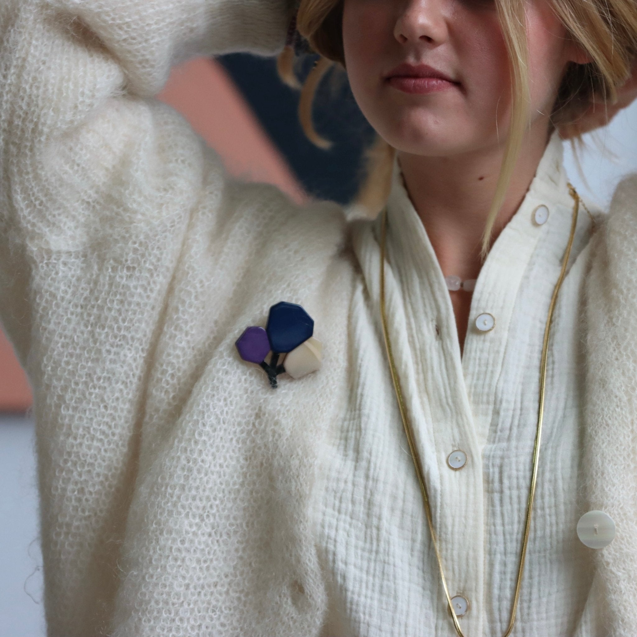 Broche en résine aux couleurs délicates pour agrémenter une belle maille ou une veste.