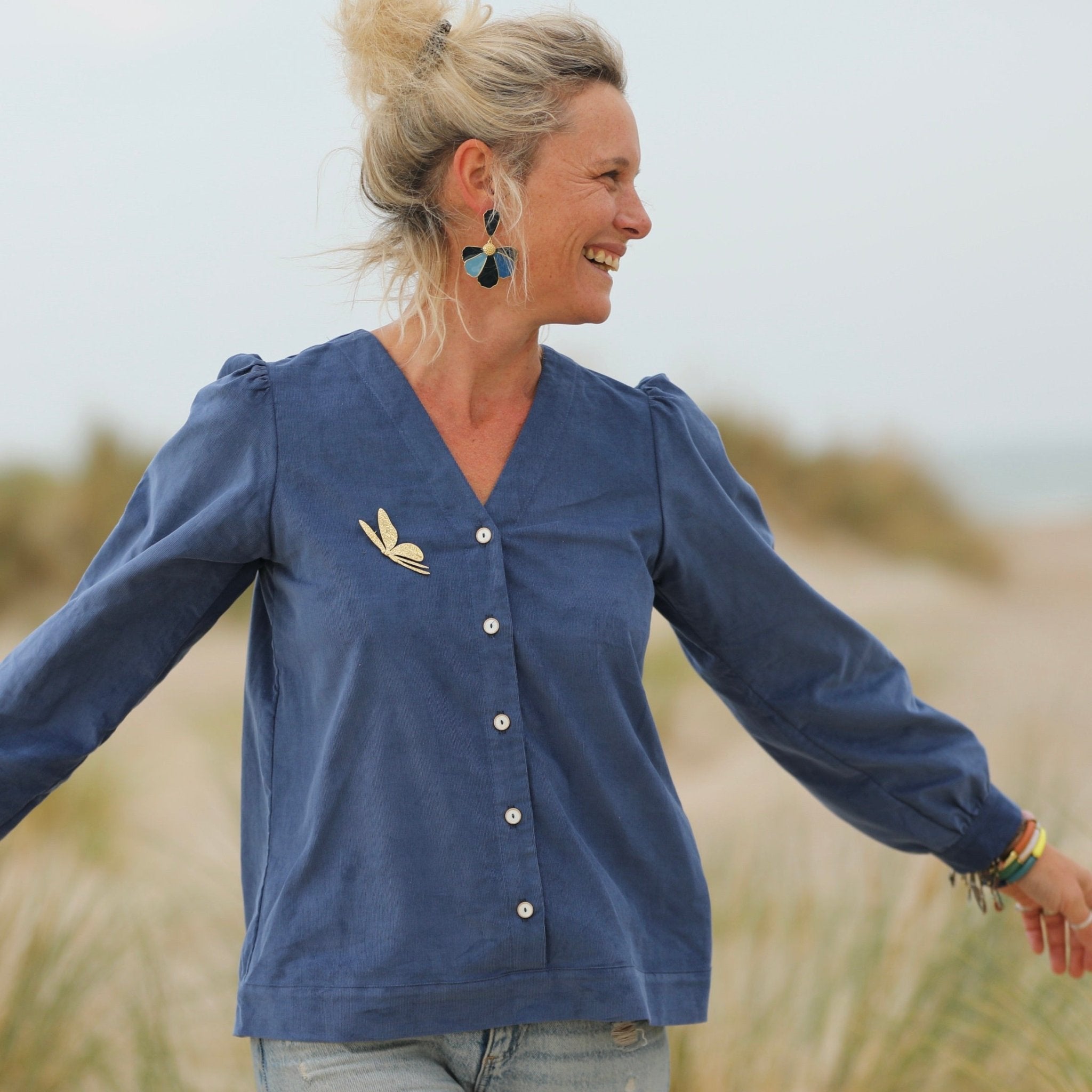 Boucles d’oreilles Camélia – Émaillées bleu & doré
