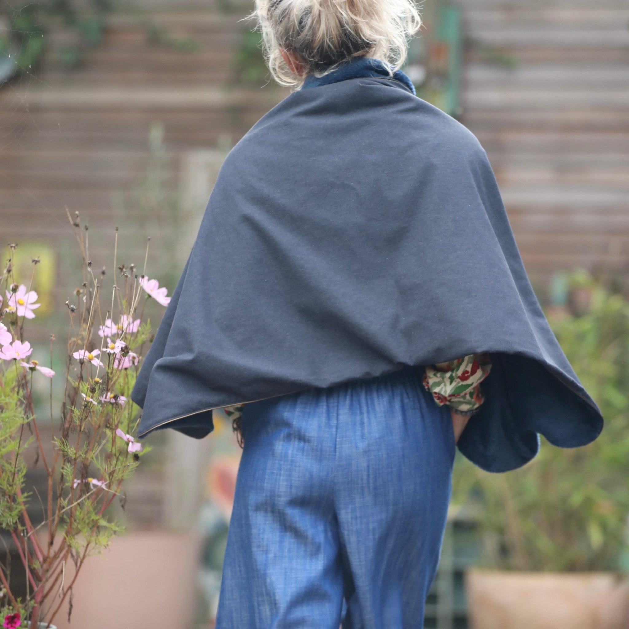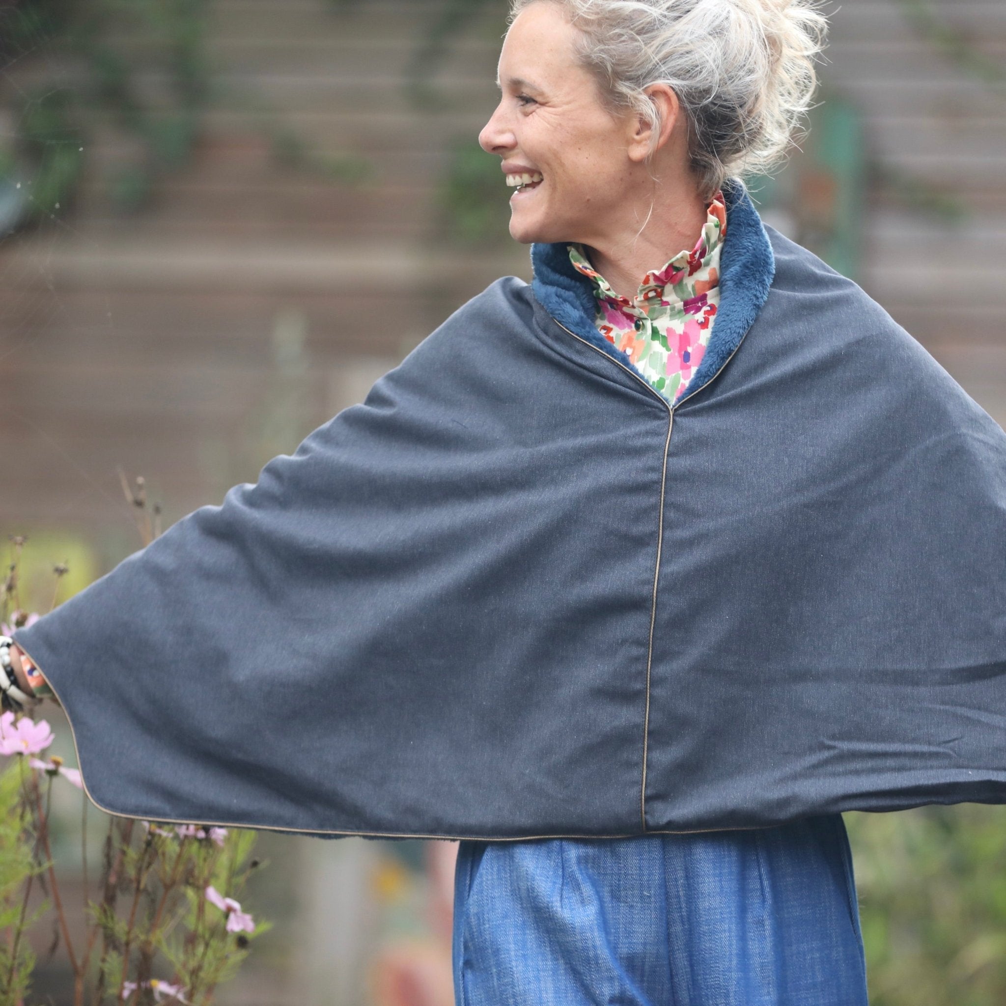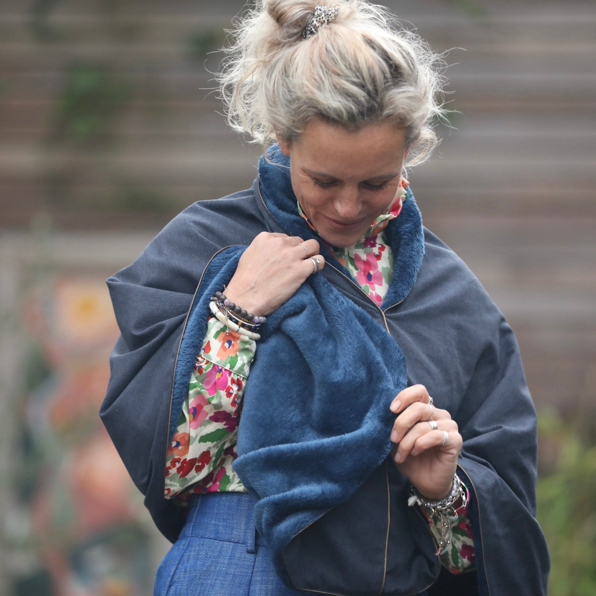 Cape courte Eugénie - Flanelle bleu ardoise/polaire bleu océan