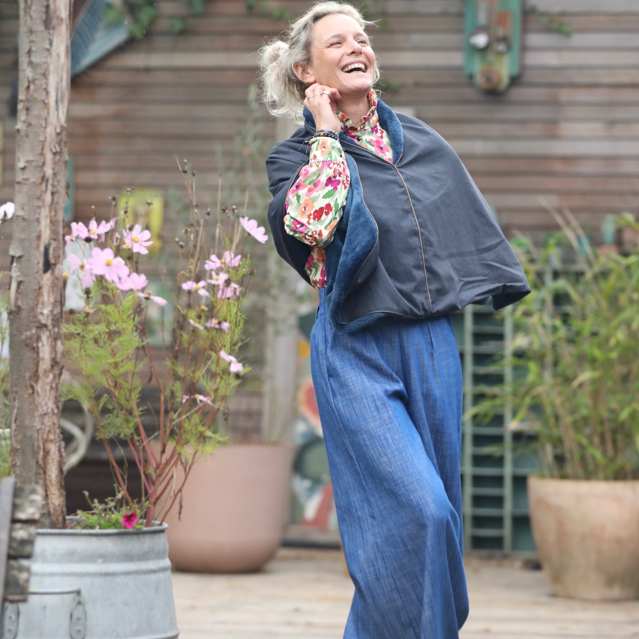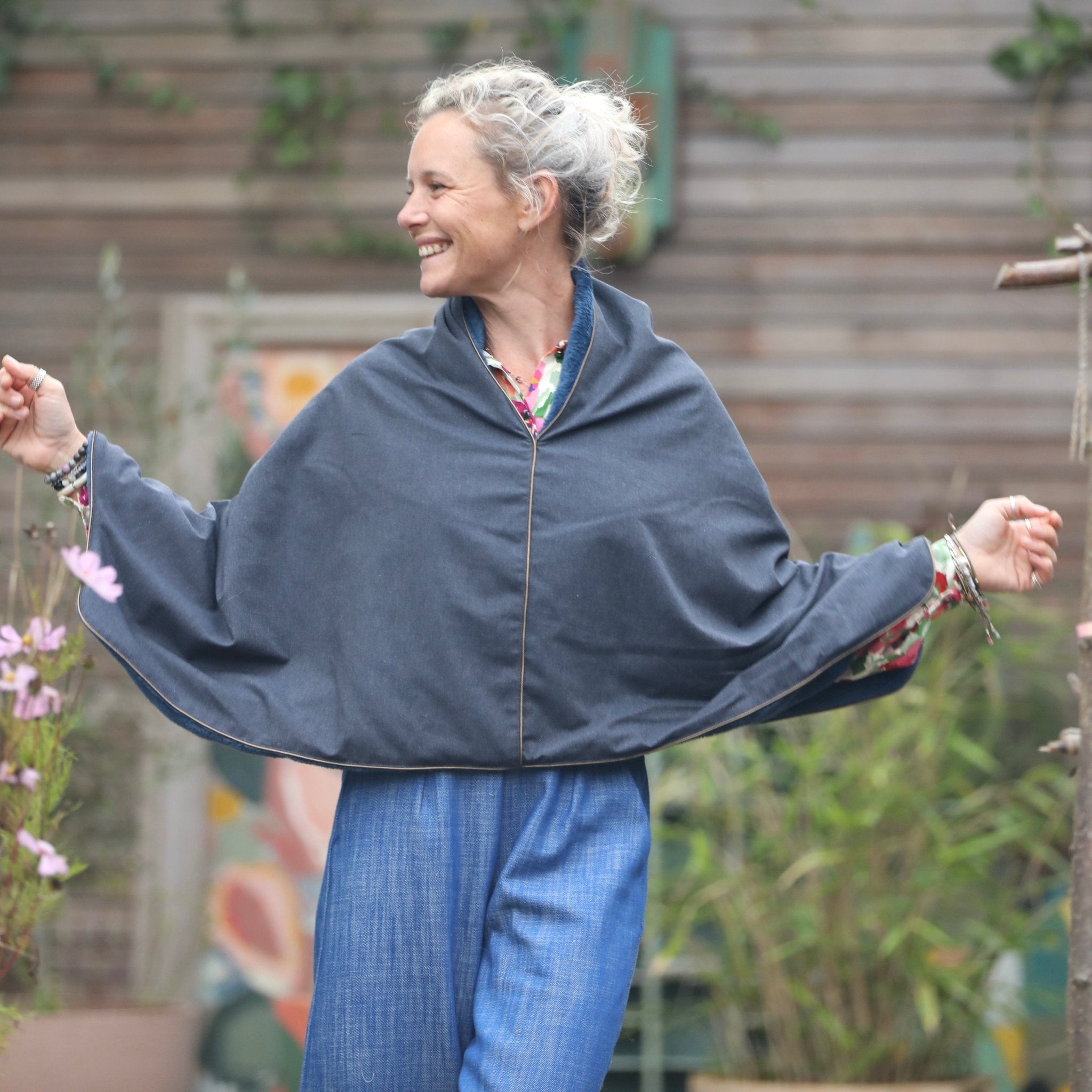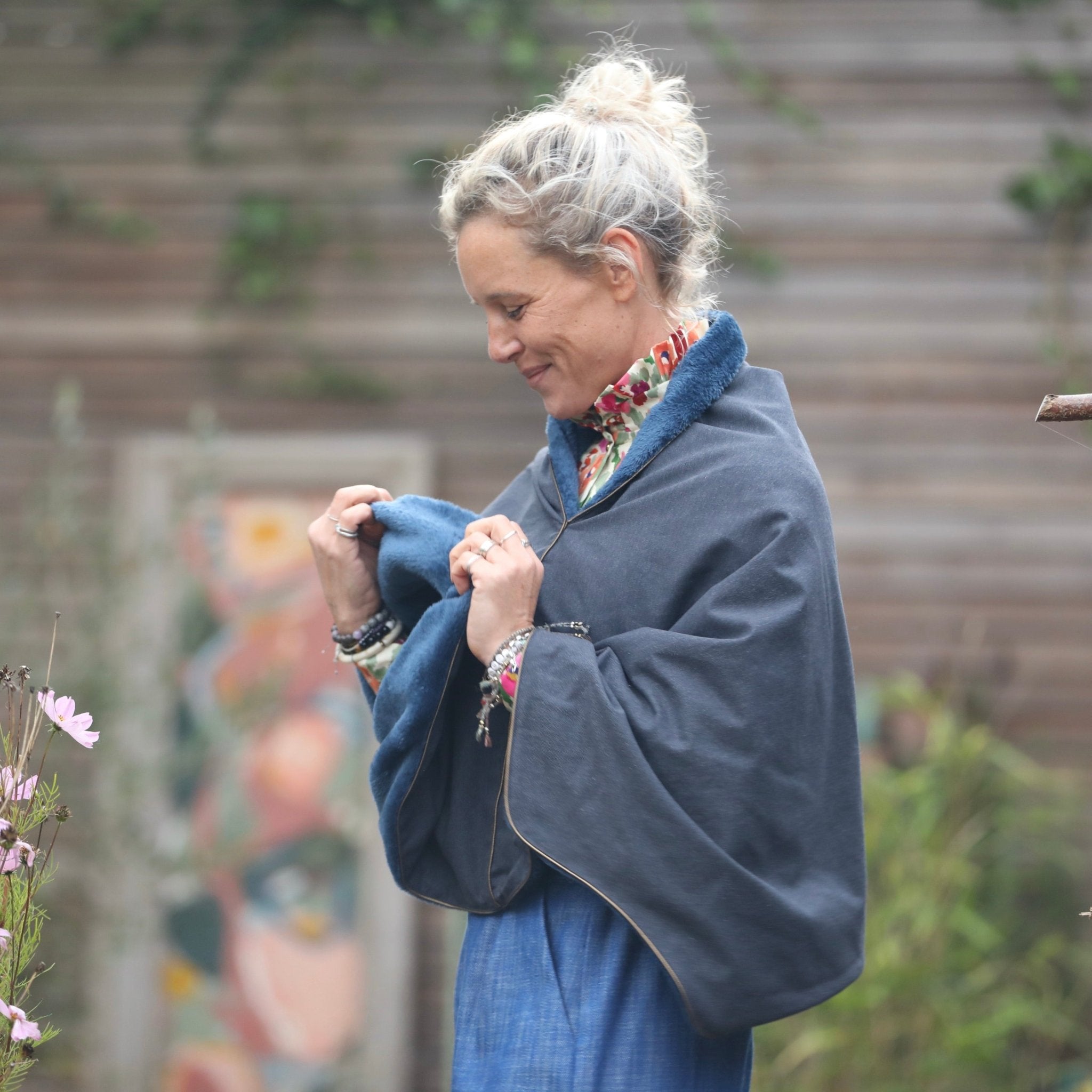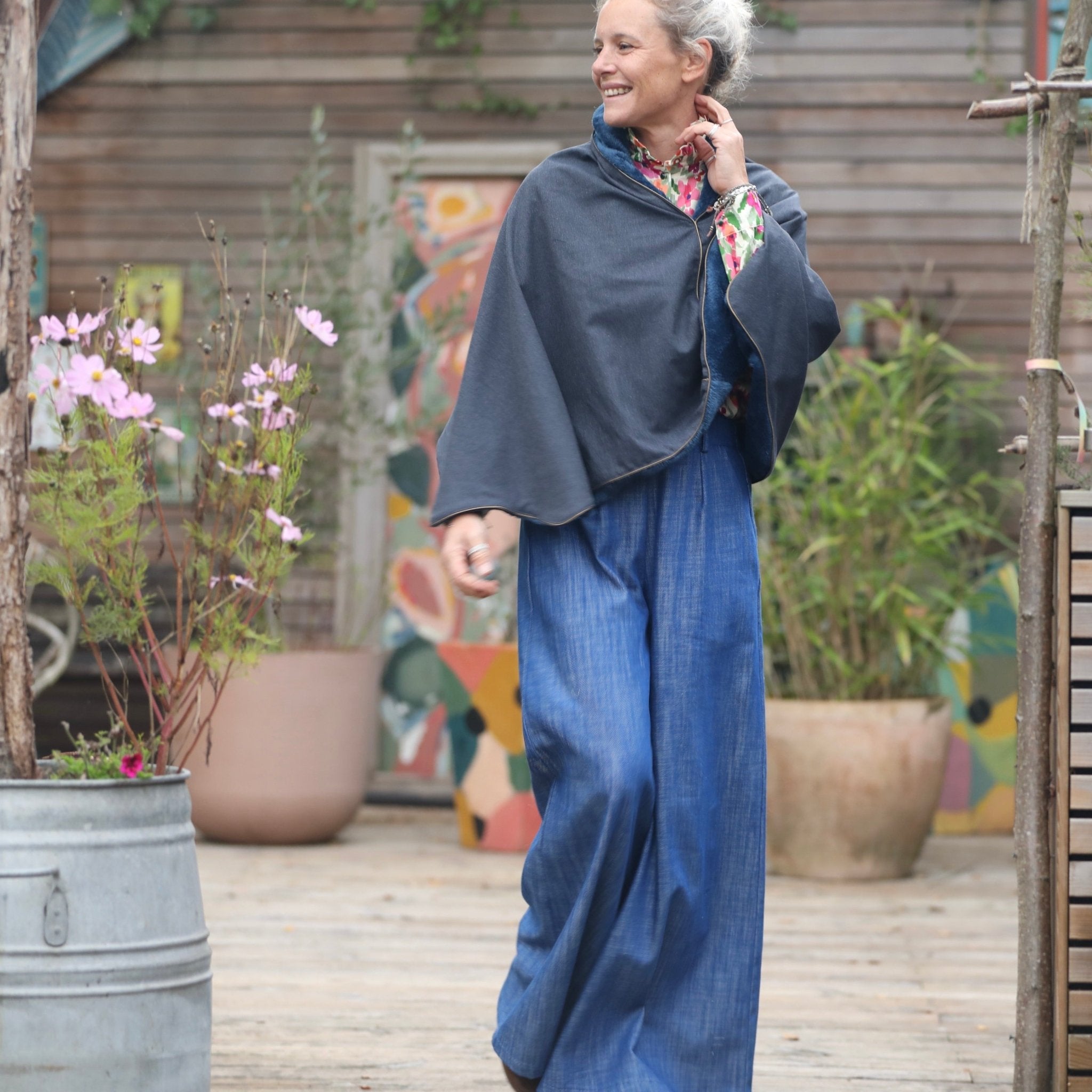 Cape courte Eugénie - Flanelle bleu ardoise/polaire bleu océan