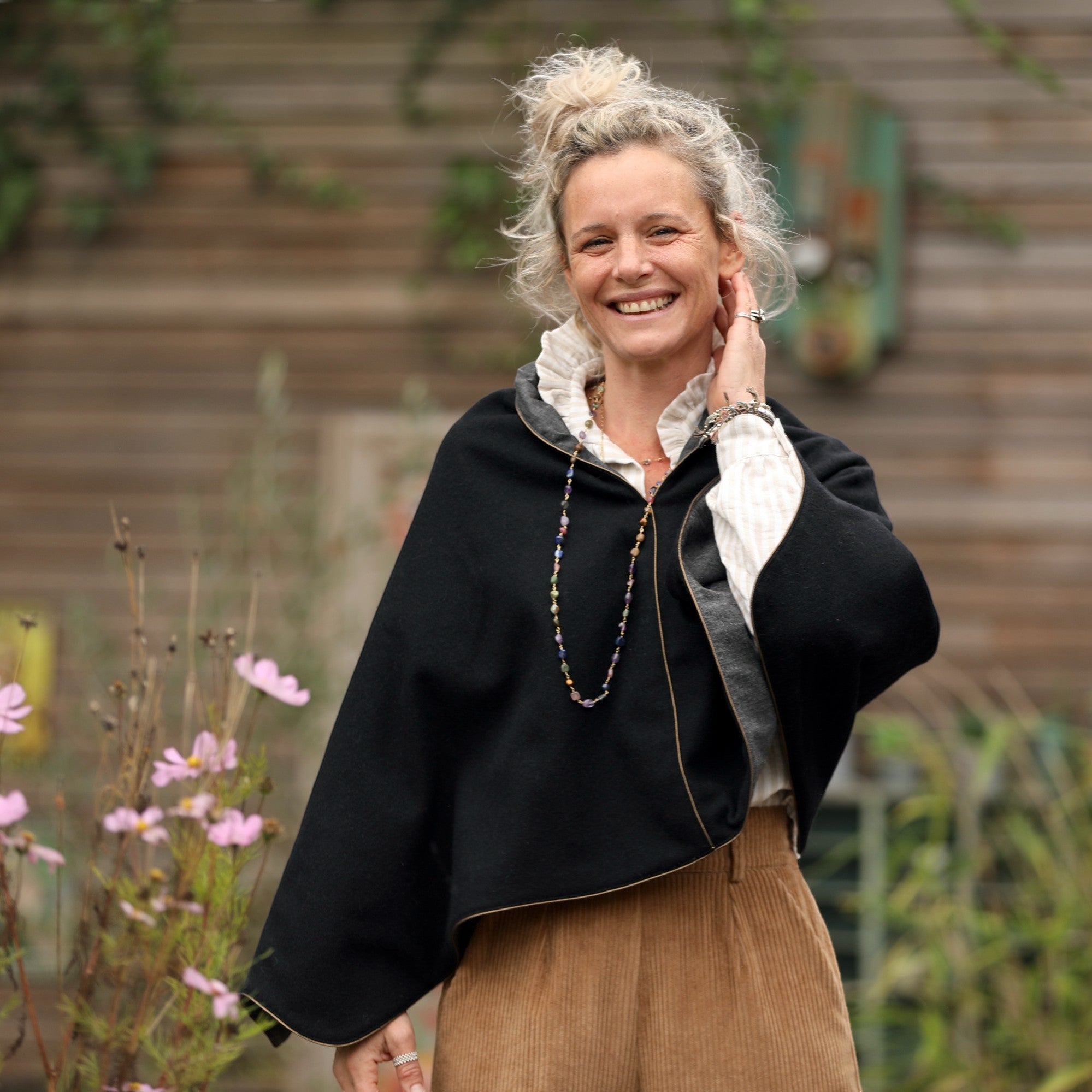 Cape courte Eugénie - lainage noir/jean noir - Quintessence