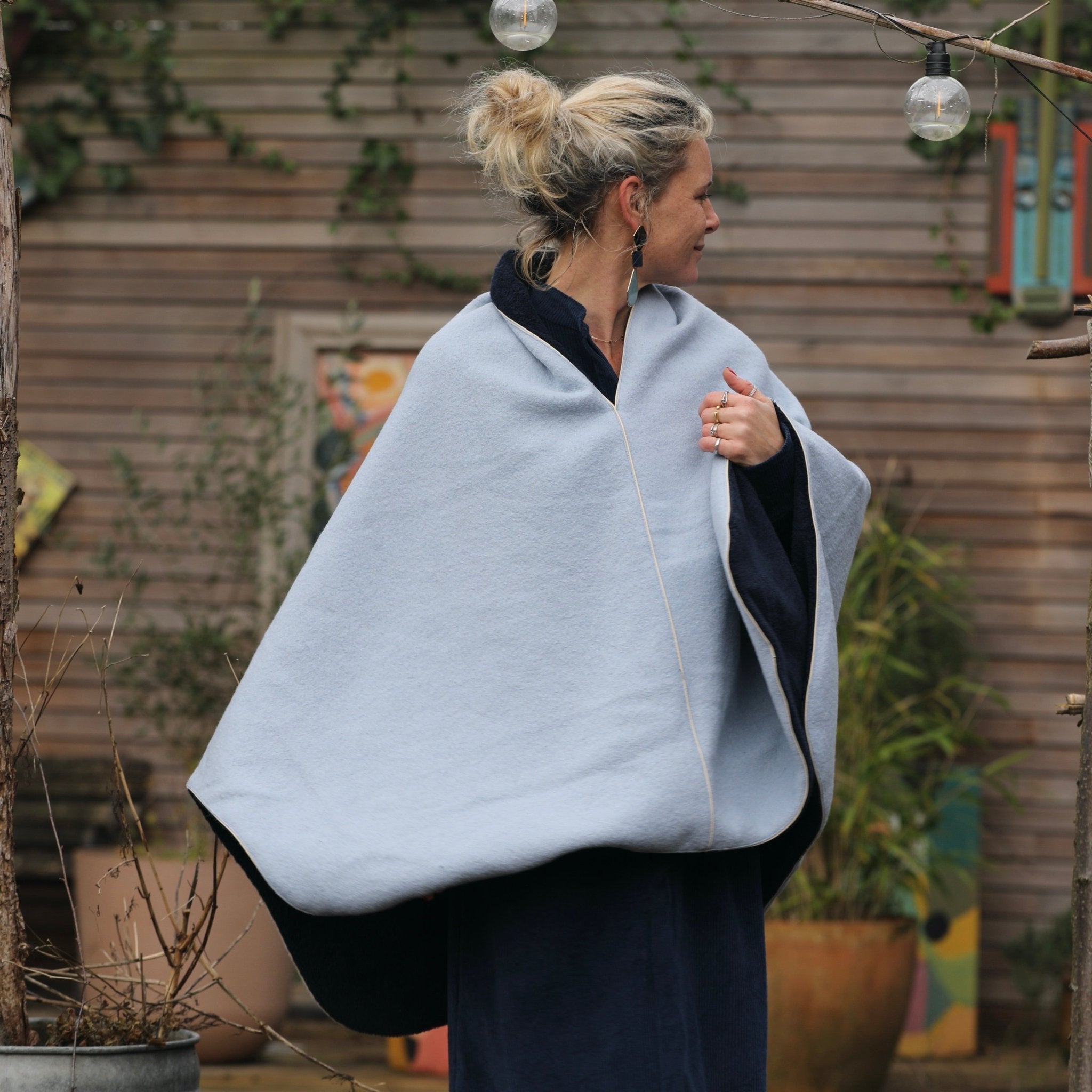 Cape midi Eugénie - laine bouillie ciel / doudou marine