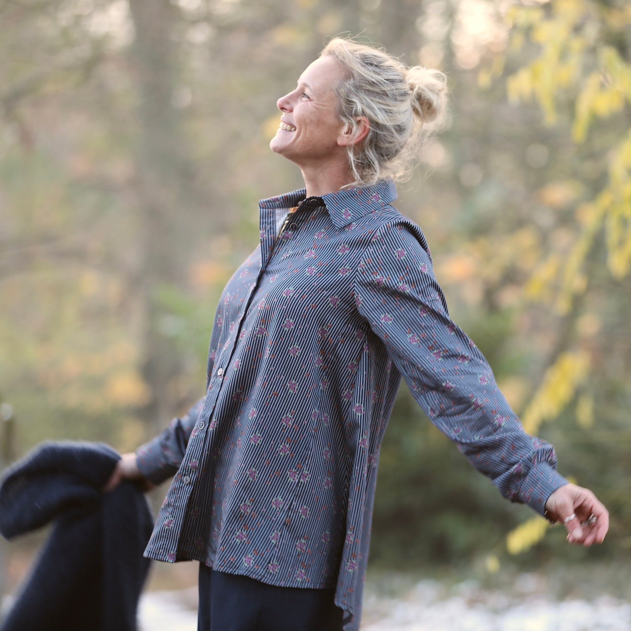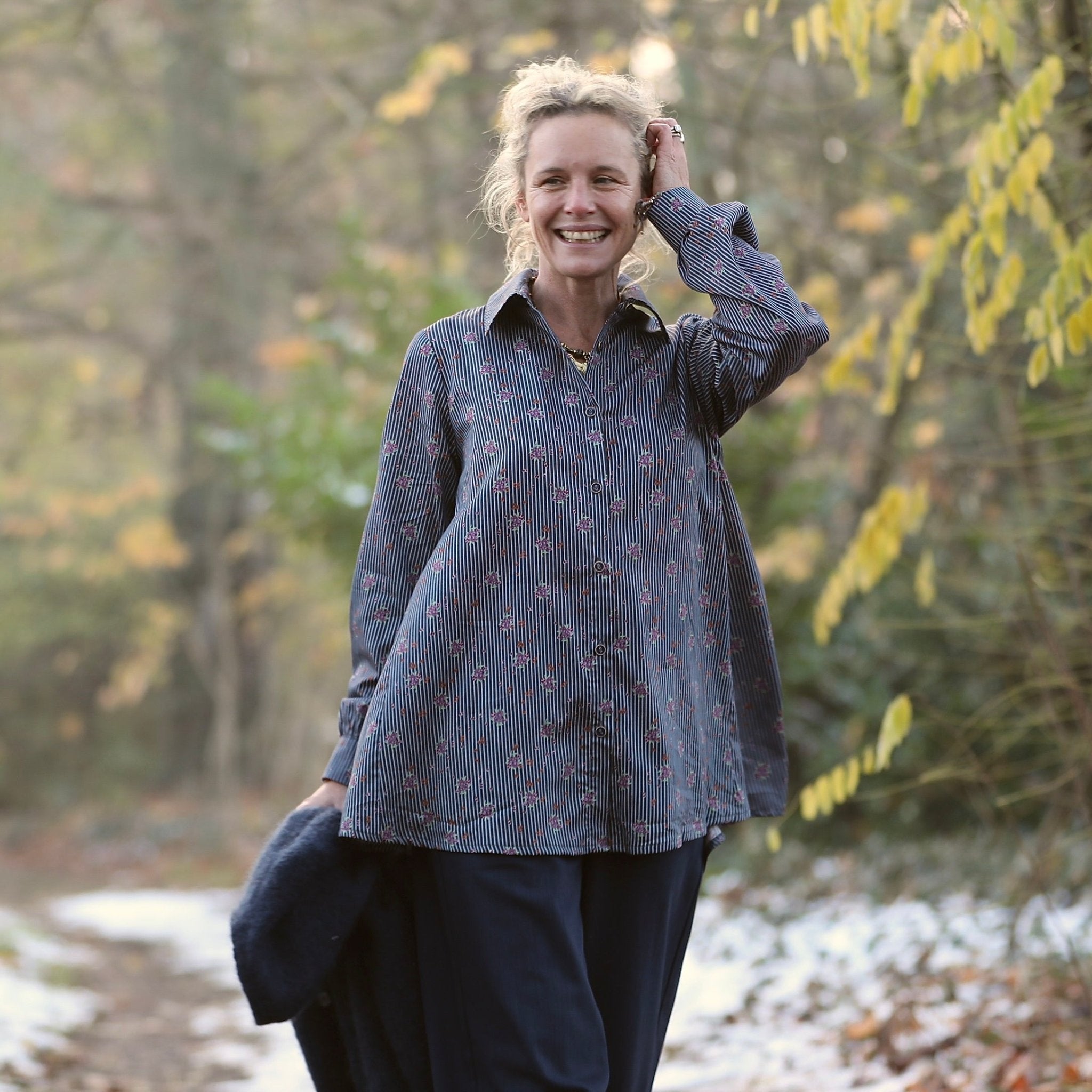 La chemise Caroline se décline ici dans un satin de coton Rayures Botaniques, un tissu doux, lumineux et délicatement satiné. Sa fluidité naturelle et son toucher soyeux offrent une allure élégante, féminine et confortable au quotidien. Sa coupe ample et évasée met en valeur toutes les silhouettes avec légèreté.
