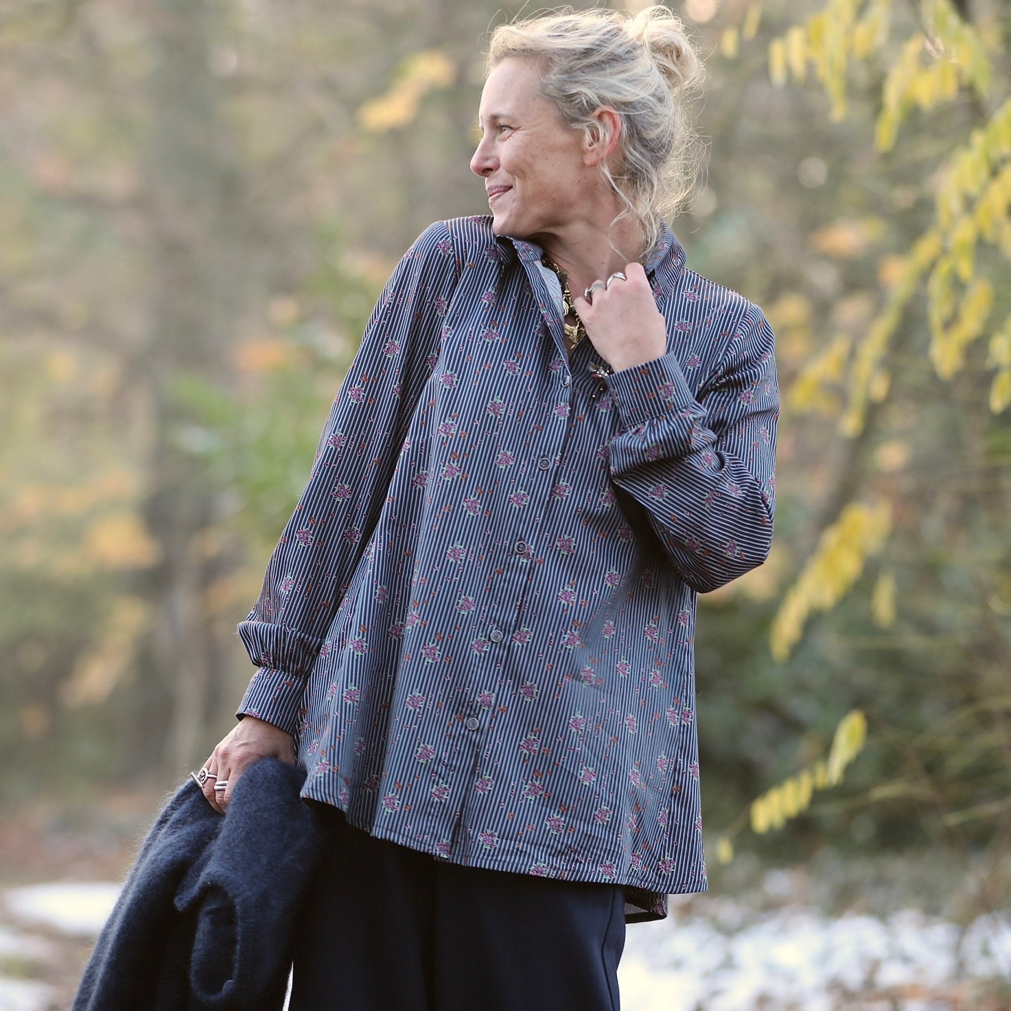 Chemise Caroline - Satin de coton Rayures Botaniques