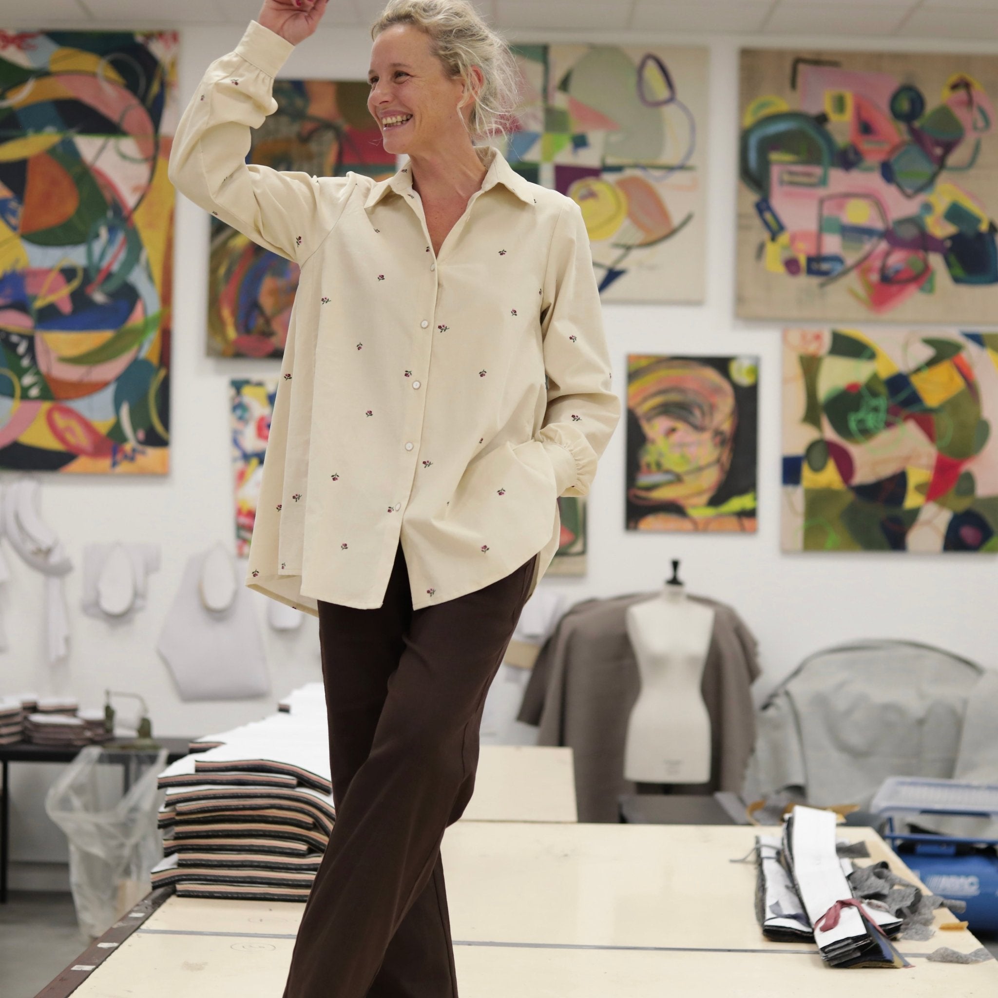 Chemise Caroline - Velours milleraies ivoire fleuri