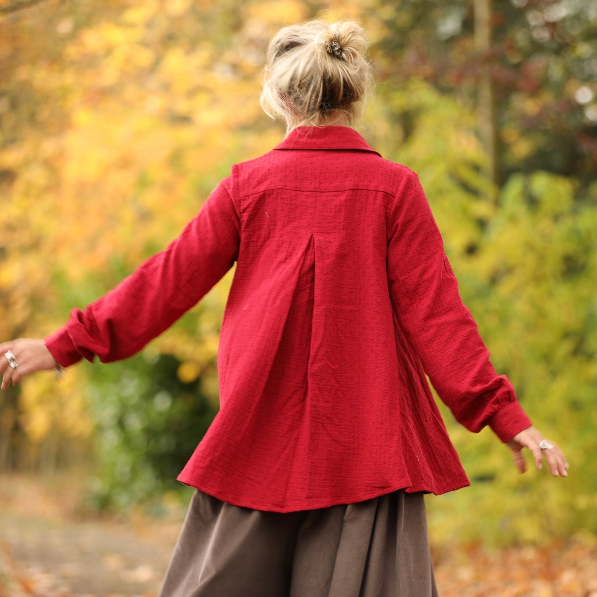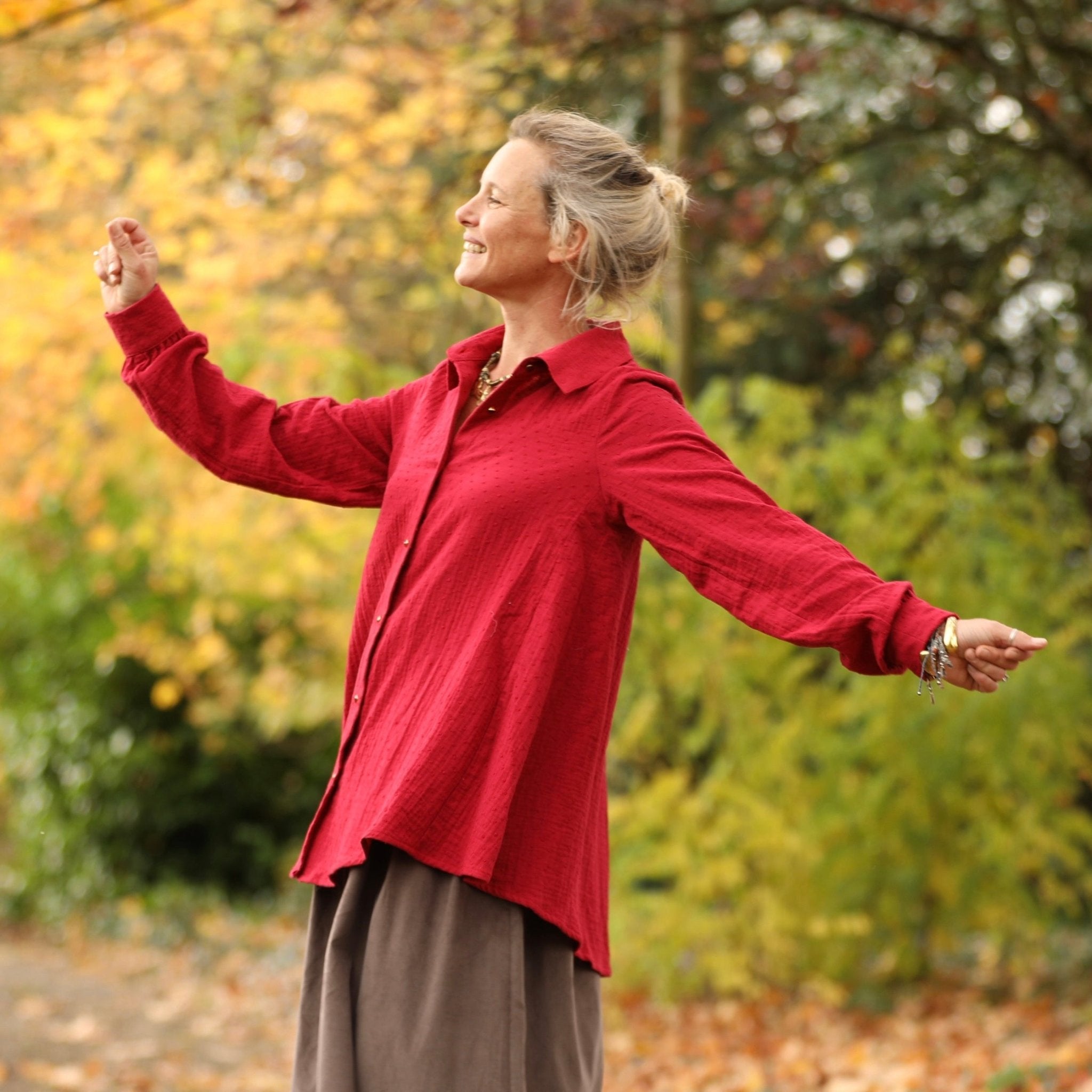 La chemise Caroline se dévoile dans une version délicate et chaleureuse en double gaze de coton plumetis grenat. Sa teinte profonde et subtilement lumineuse apporte une touche de caractère, tandis que la texture aérienne et gaufrée de la double gaze assure un confort incomparable. Une coupe fluide et féminine, parfaite pour toutes les saisons.