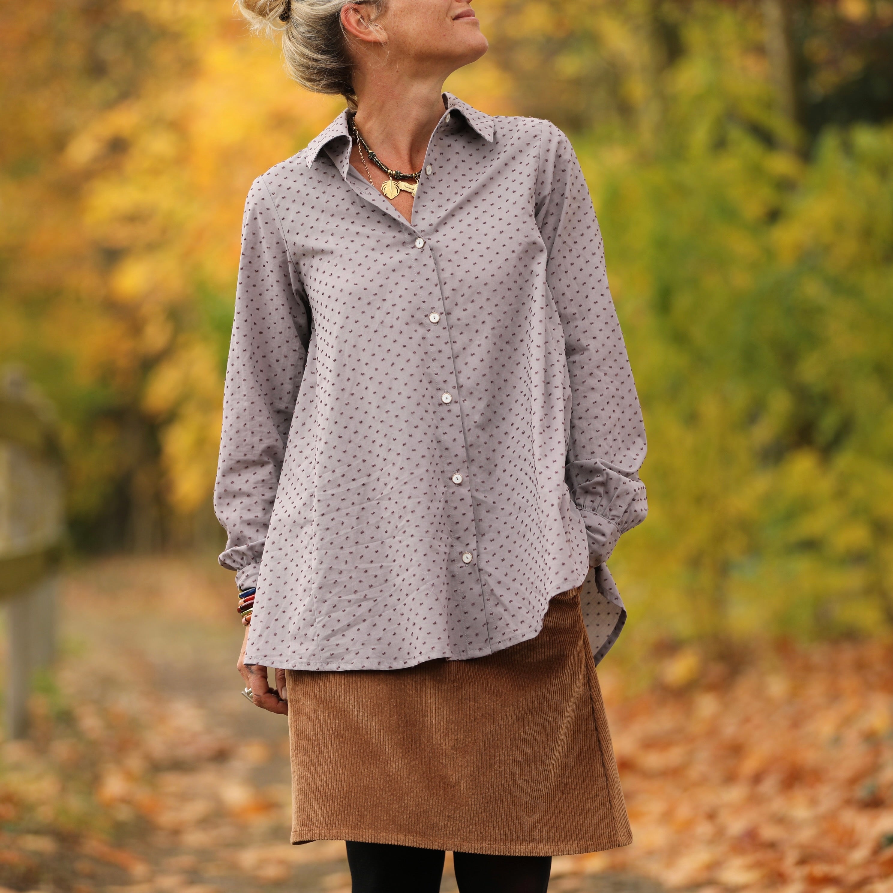 La chemise Caroline se pare ici d’une teinte délicate et raffinée : la double gaze de coton plumetis brume violette. Un coloris subtil mêlant les nuances douces du mauve et la profondeur du violet, pour une allure à la fois féminine et apaisante. Légère, fluide et d’une grande douceur, elle conjugue élégance naturelle et confort absolu.