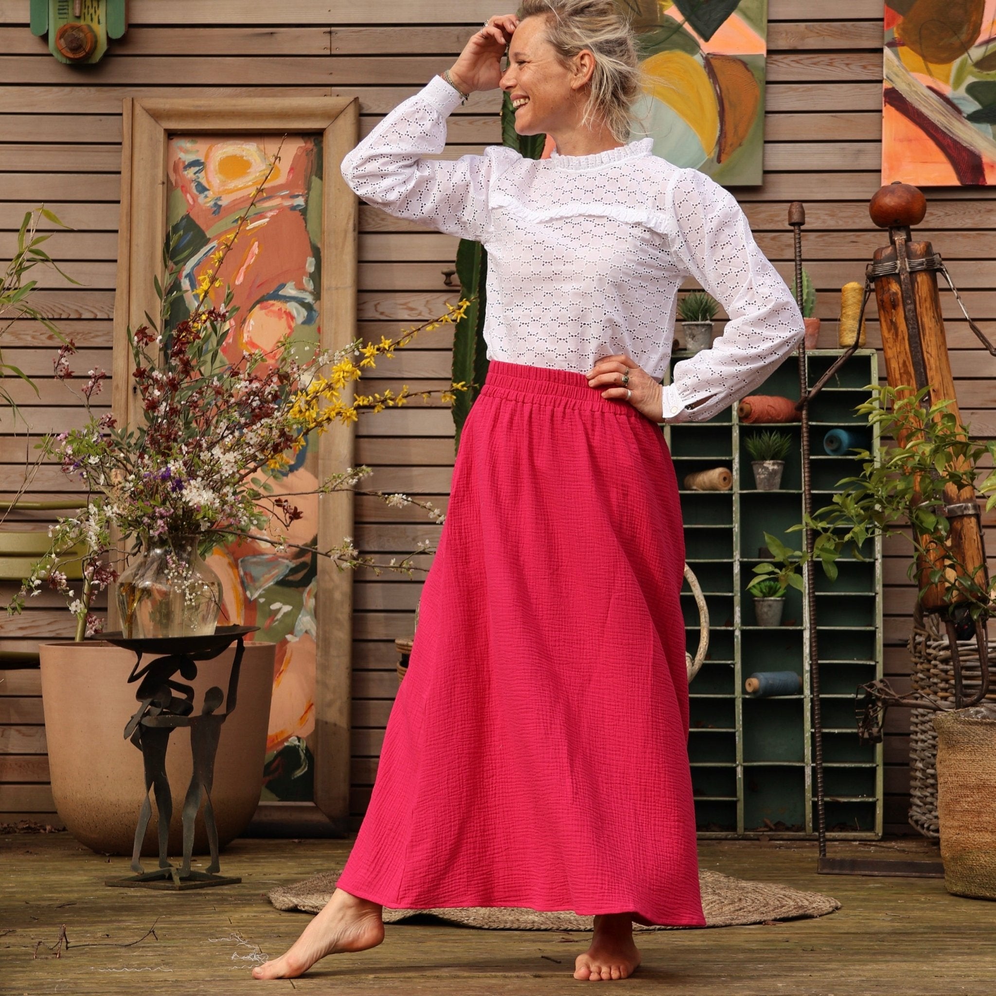Voici Tao, notre jolie jupe élastiquée, longue et fluide.