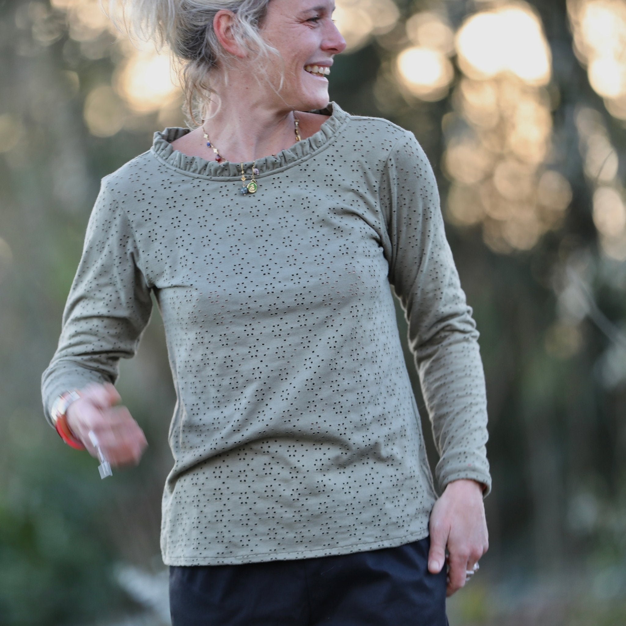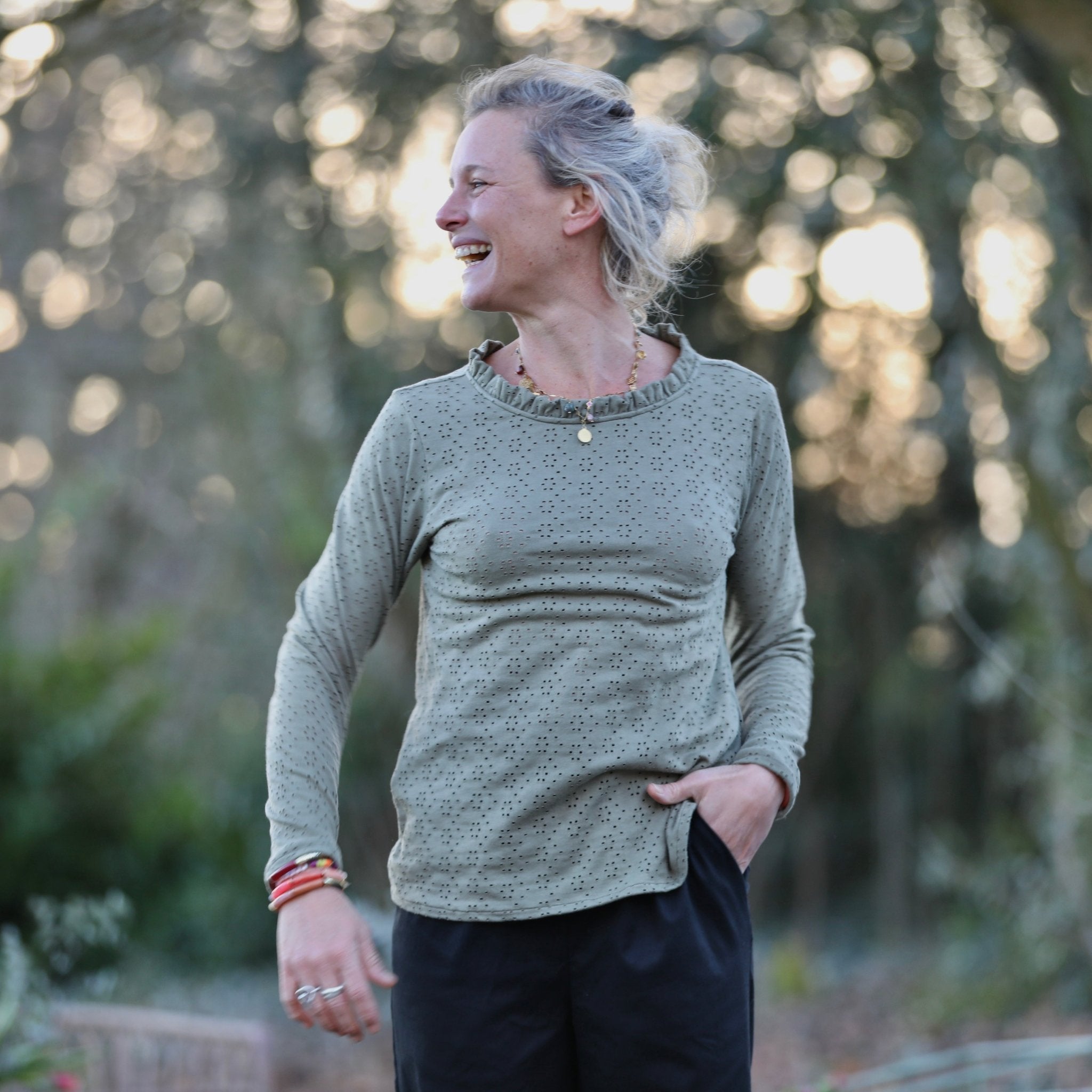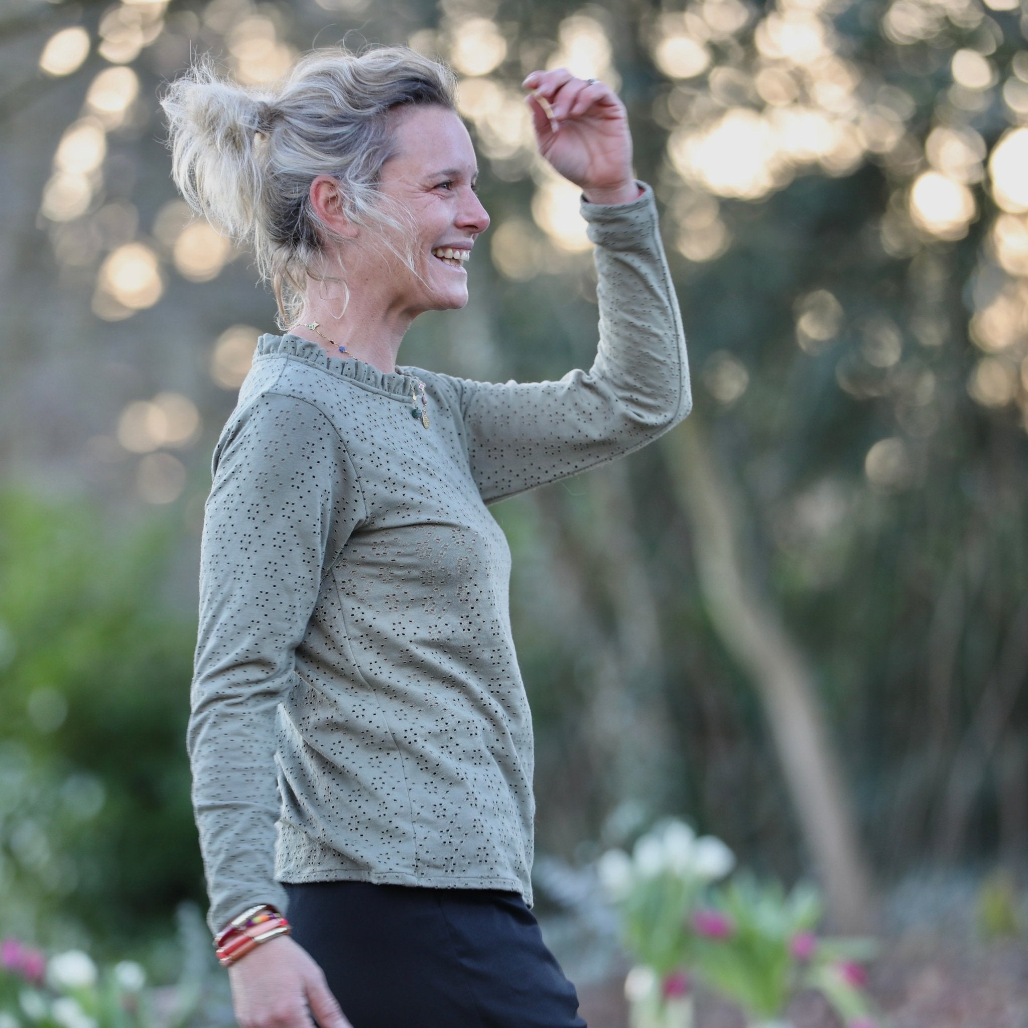 Facile à associer, la blouse Clarisse se porte aussi bien avec un jean, un pantalon fluide ou une jupe. Sa teinte kaki, naturelle et intemporelle, s’intègre harmonieusement dans un vestiaire du quotidien comme dans des silhouettes plus habillées.