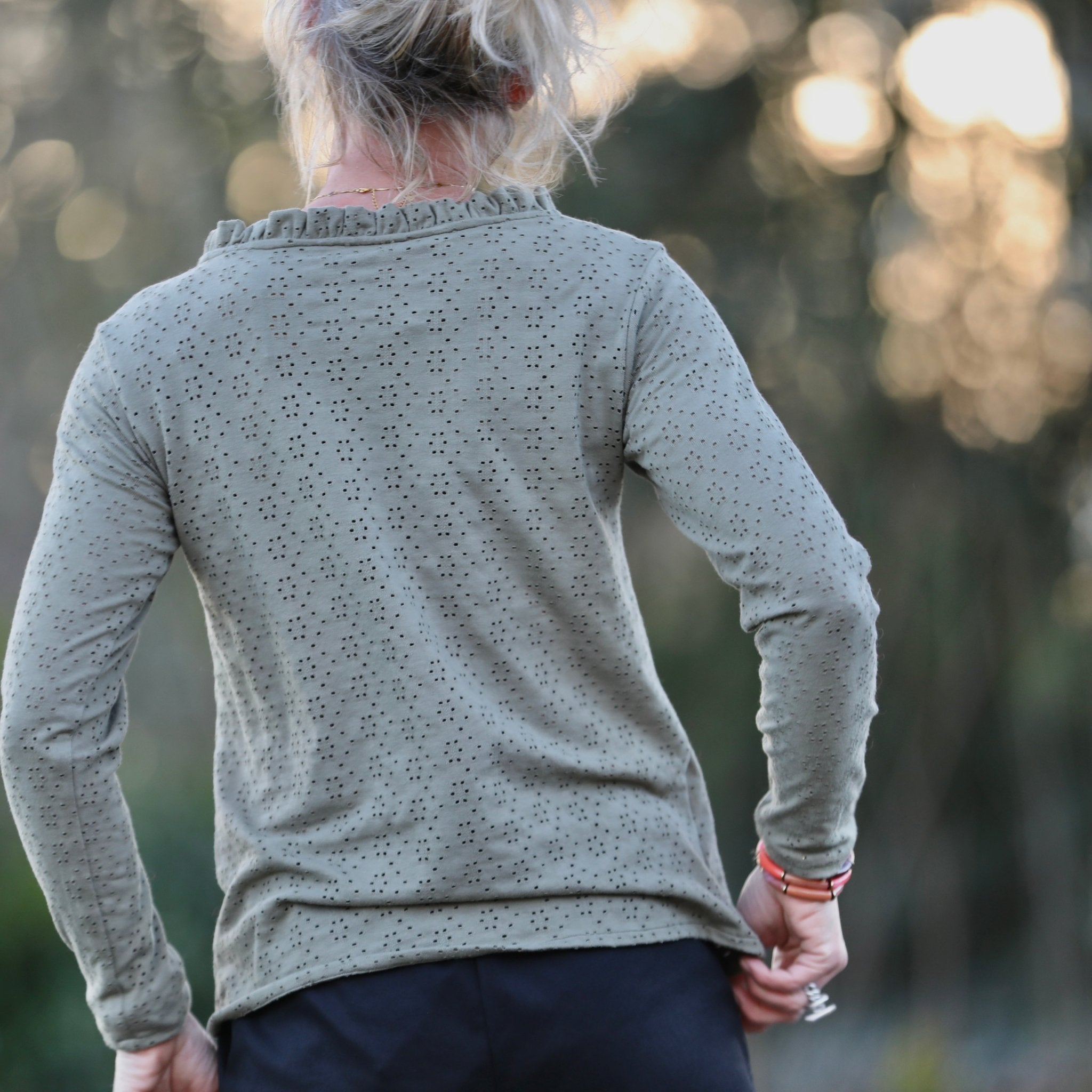 Blouse Clarisse - Jersey brodé kaki - Quintessence