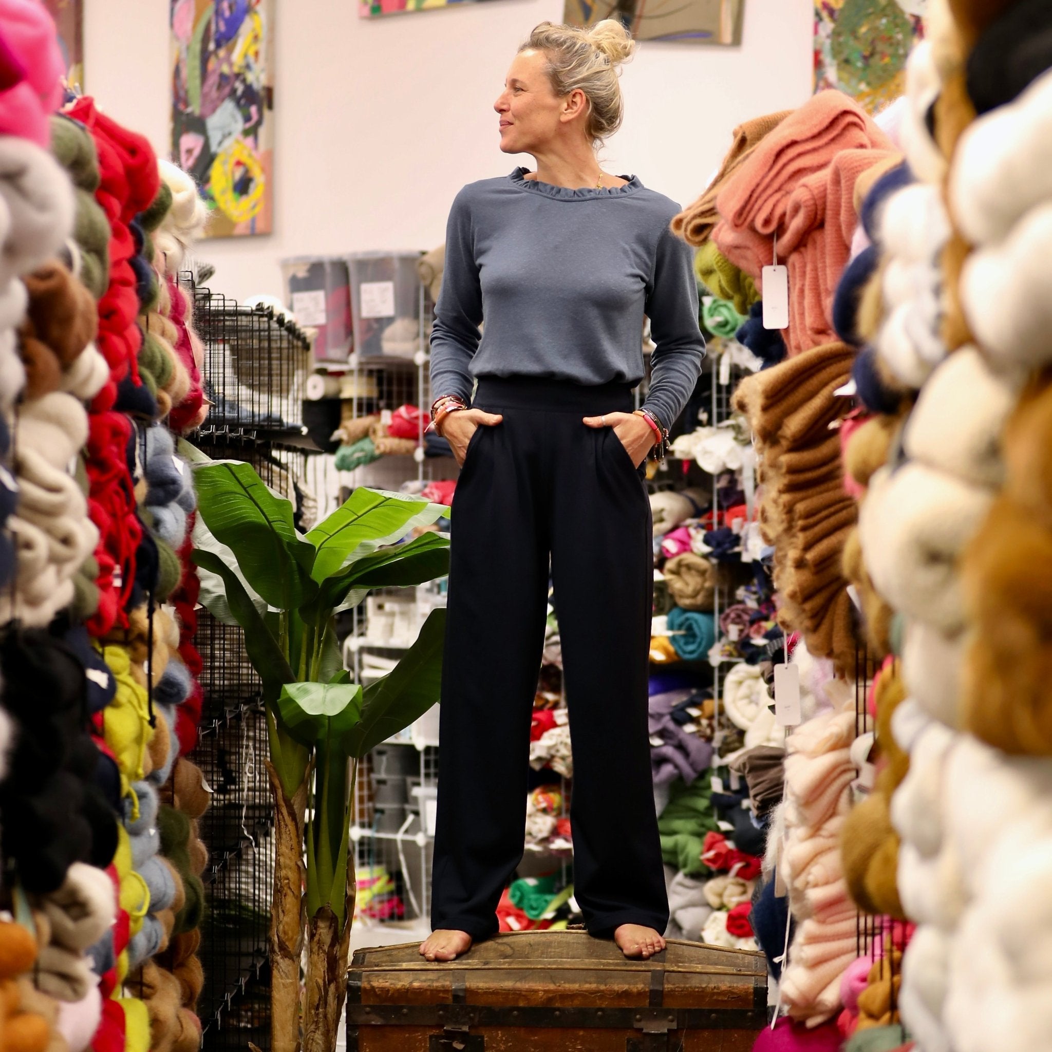 Élégante et facile à associer, la blouse Clarisse se porte aussi bien avec un jean, un pantalon fluide ou une jupe. Son coloris bleu navy, profond et intemporel, apporte une touche chic au vestiaire et se prête à de nombreuses associations.
