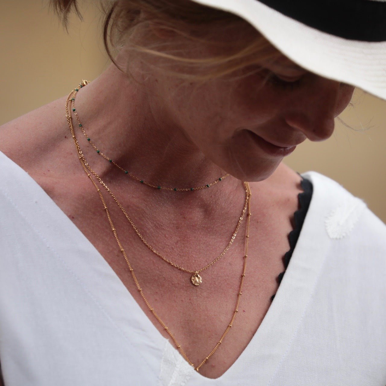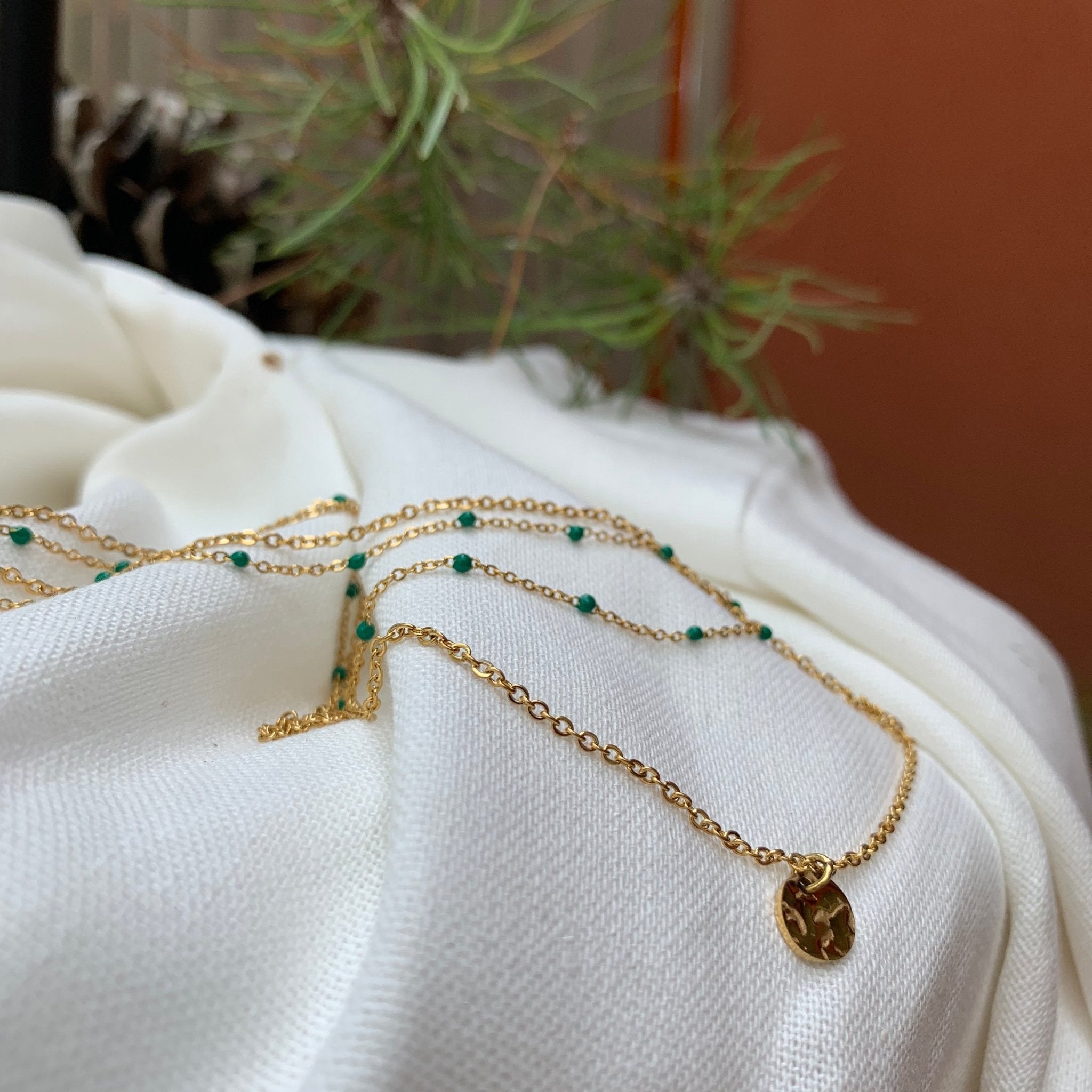 Collier 2 rangs mi-long Aélis - vert émeraude