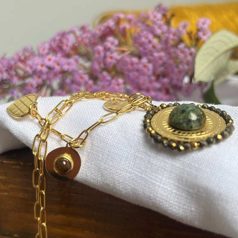 Collier Murmure turquoise africaine / pierre pyrite