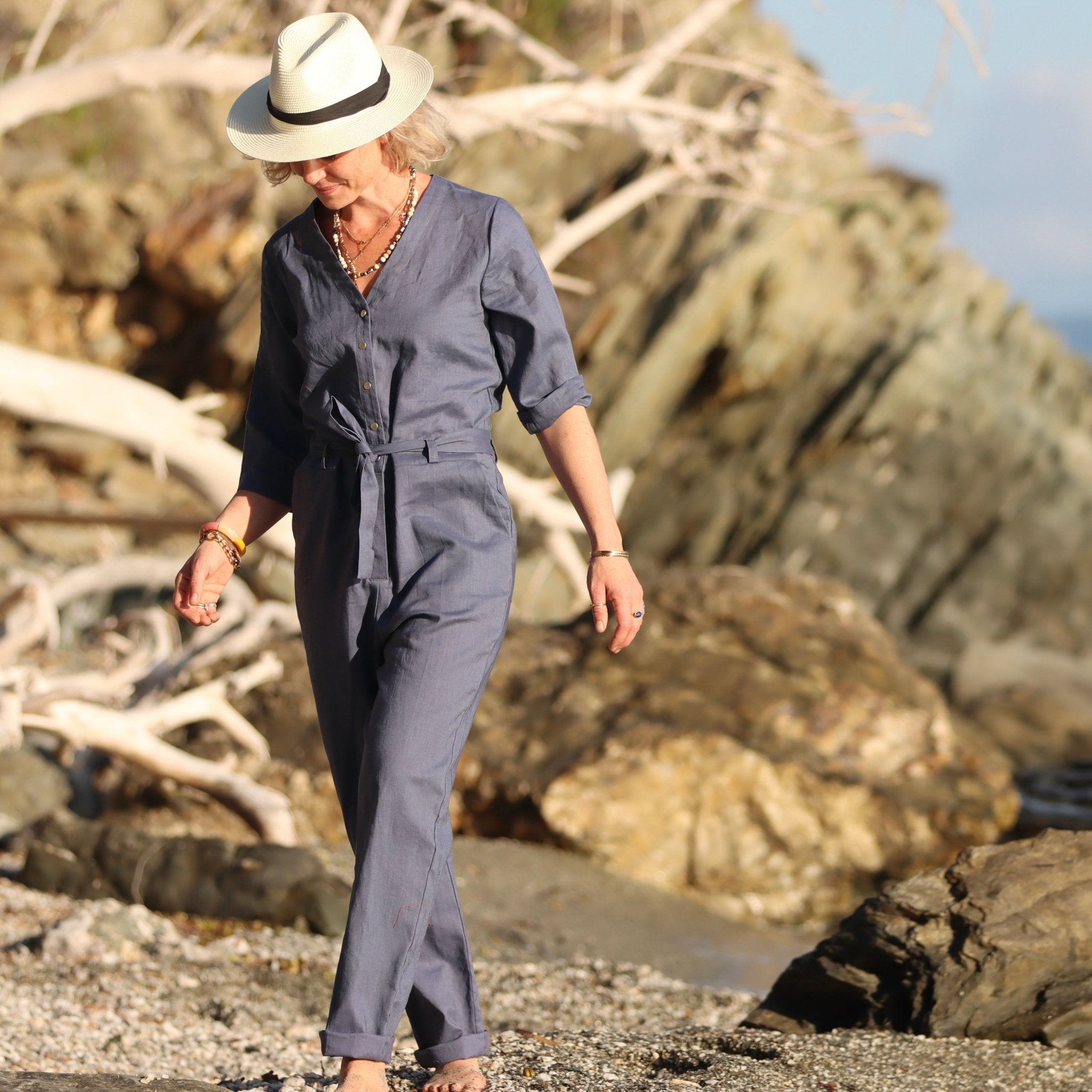 Combinaison Erika lin lavé bleu lavande