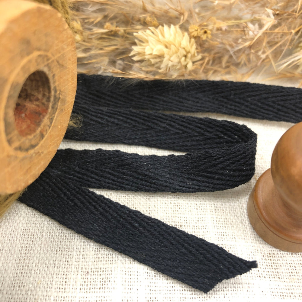 Galon de sergé chevron épais noir 1 cm - au mètre