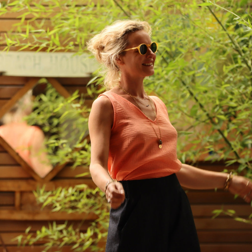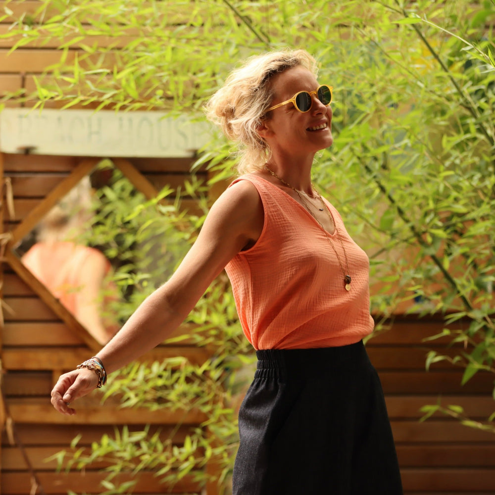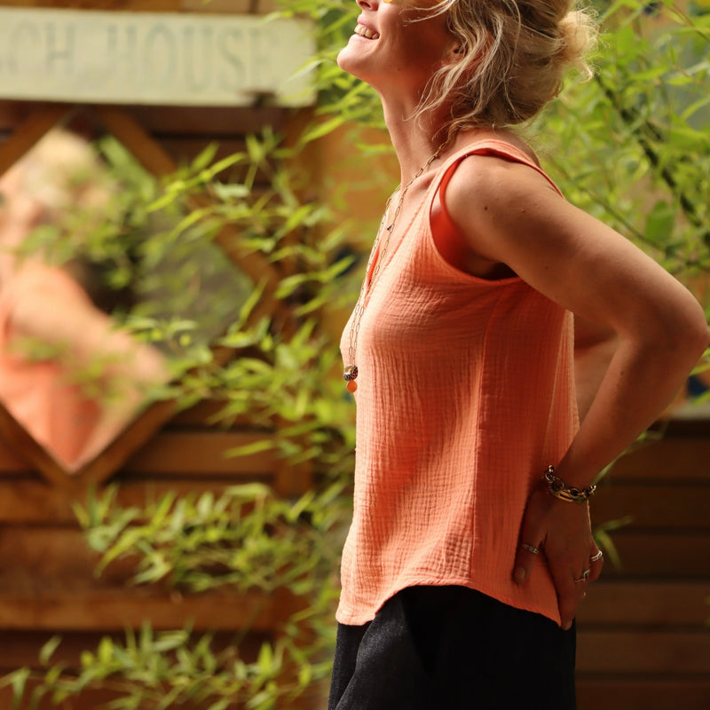 Débardeur Félicie - Double gaze de coton corail - Quintessence