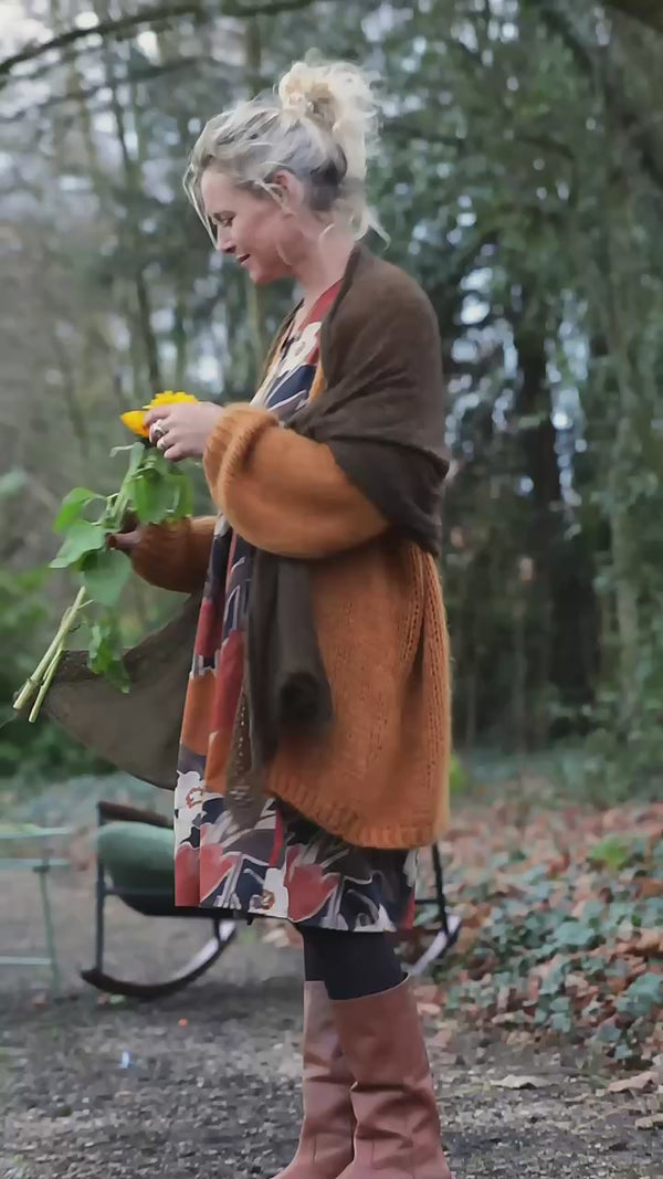 La robe Édonie se porte aussi bien seule avec une paire de bottines pour un look élégant, que sous une maille douce pour une tenue plus réconfortante. Sa lumière subtile et sa longueur midi la rendent idéale pour un style chic au quotidien comme pour une silhouette plus habillée.