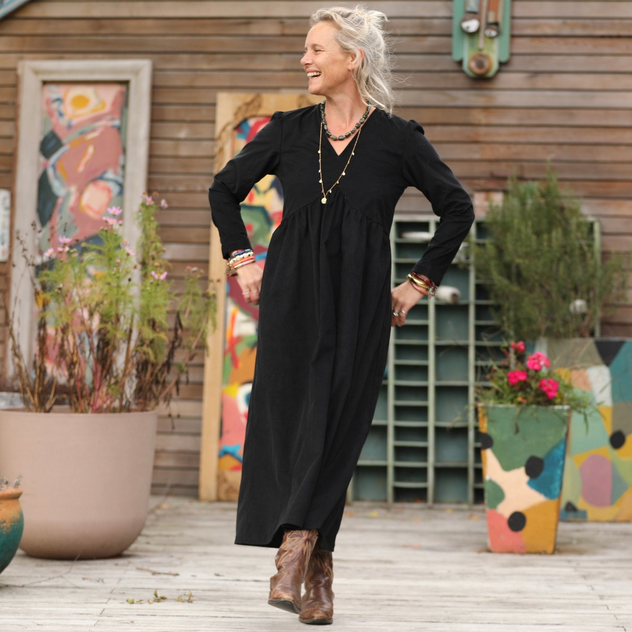 Robe Edonie manches longues - Velours milleraies noir - Quintessence