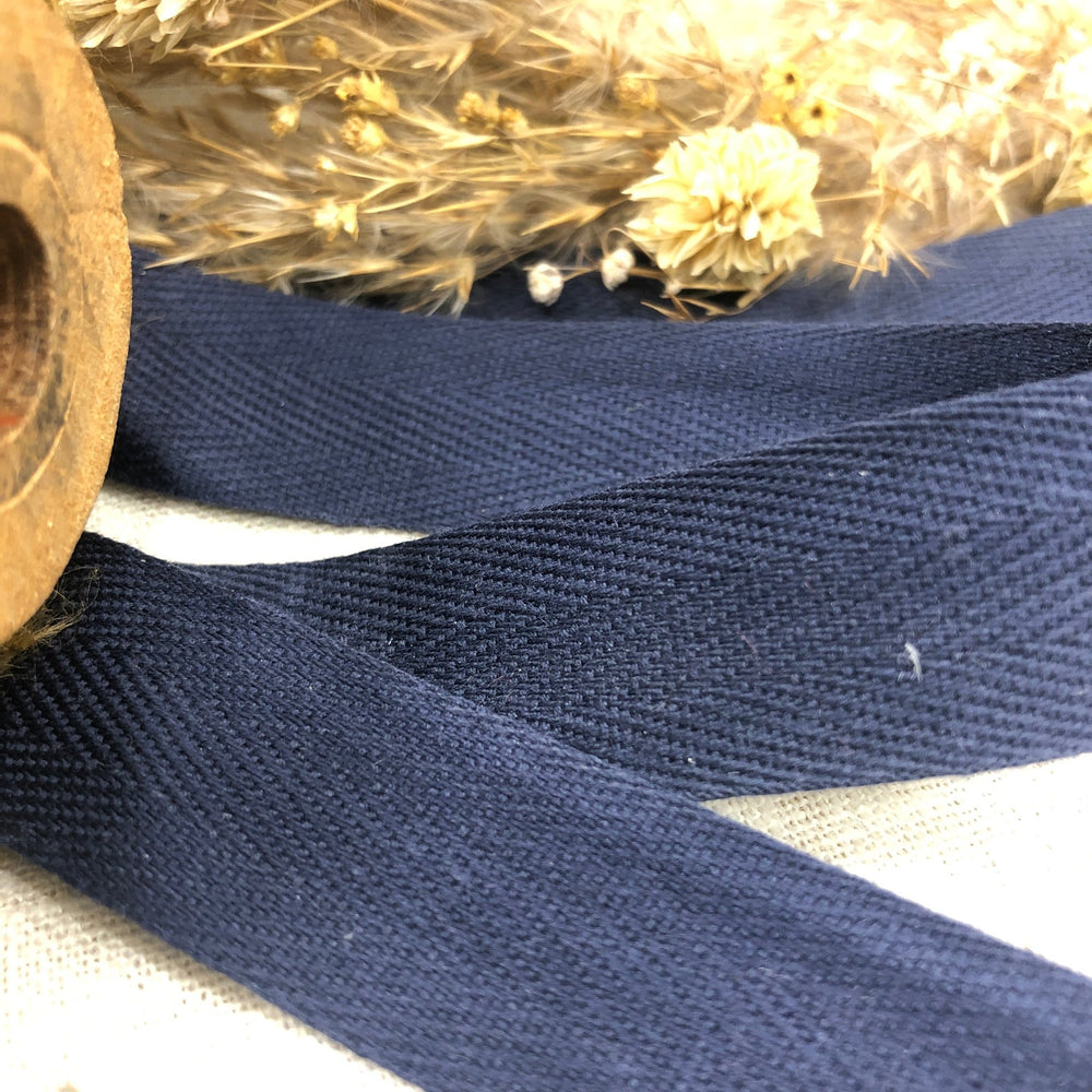 Galon de sergé chevron bleu indigo 2 cm - au mètre - Quintessence
