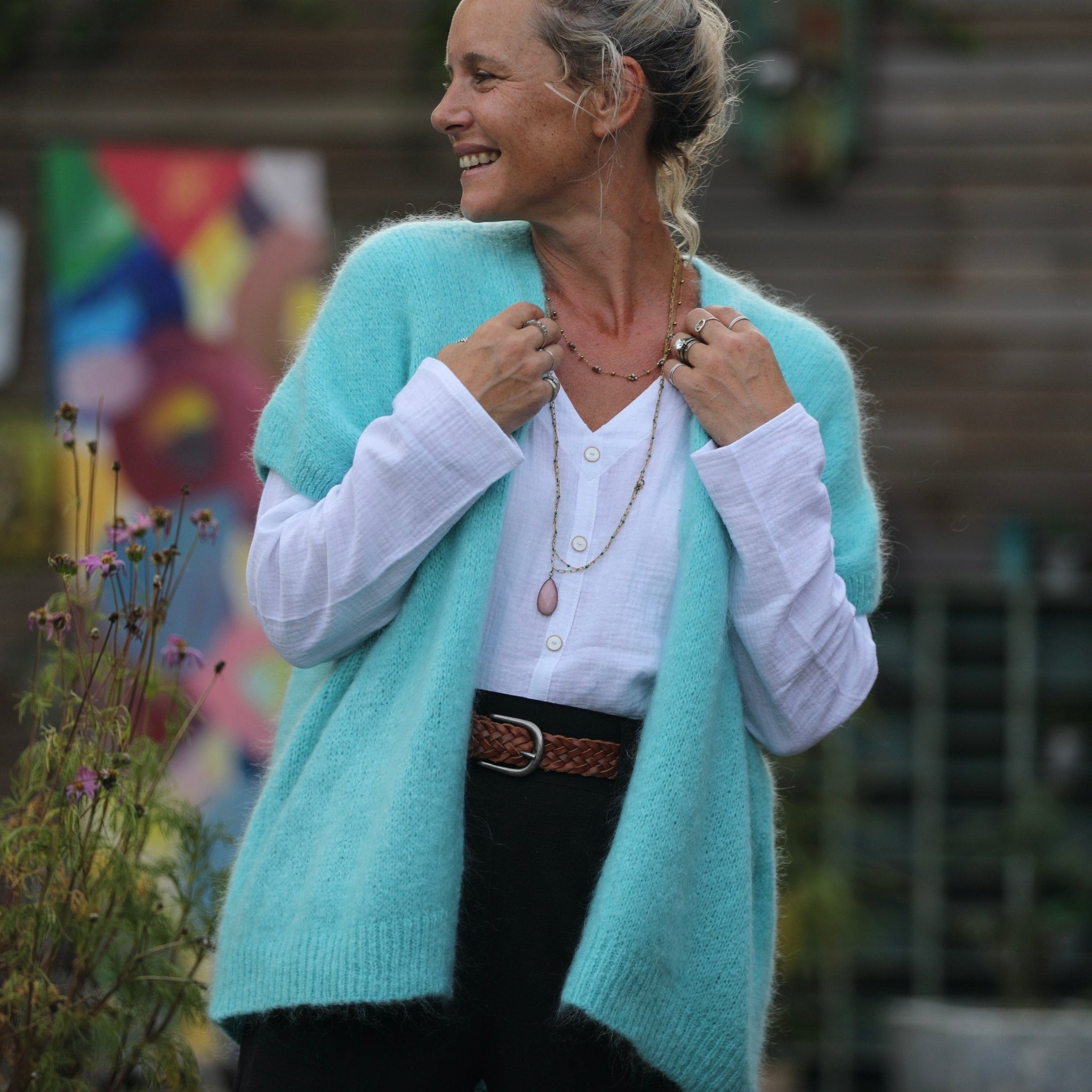 Laine et mohair : programme délicat laine, avec essorage très doux. Un séchage à plat est recommandé.