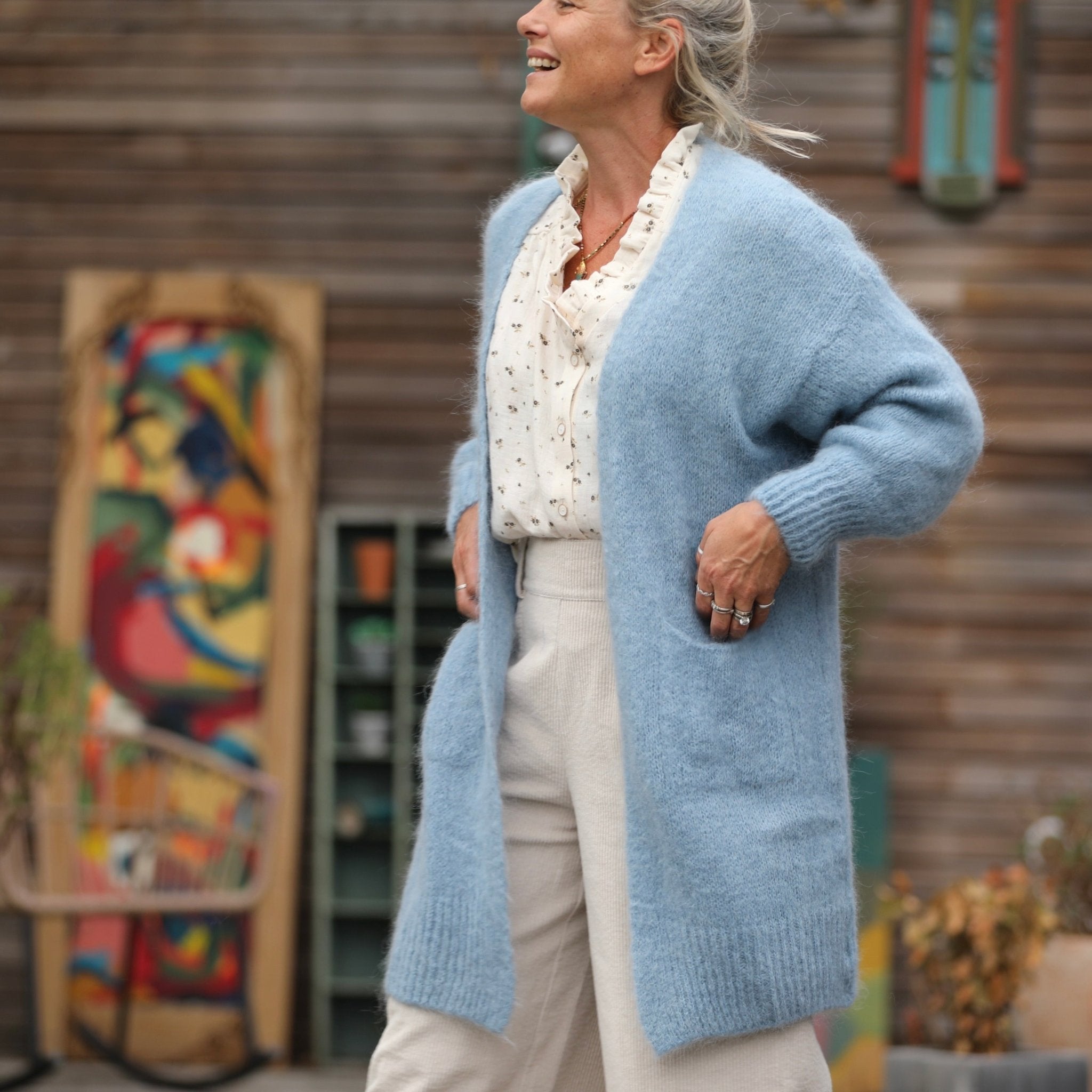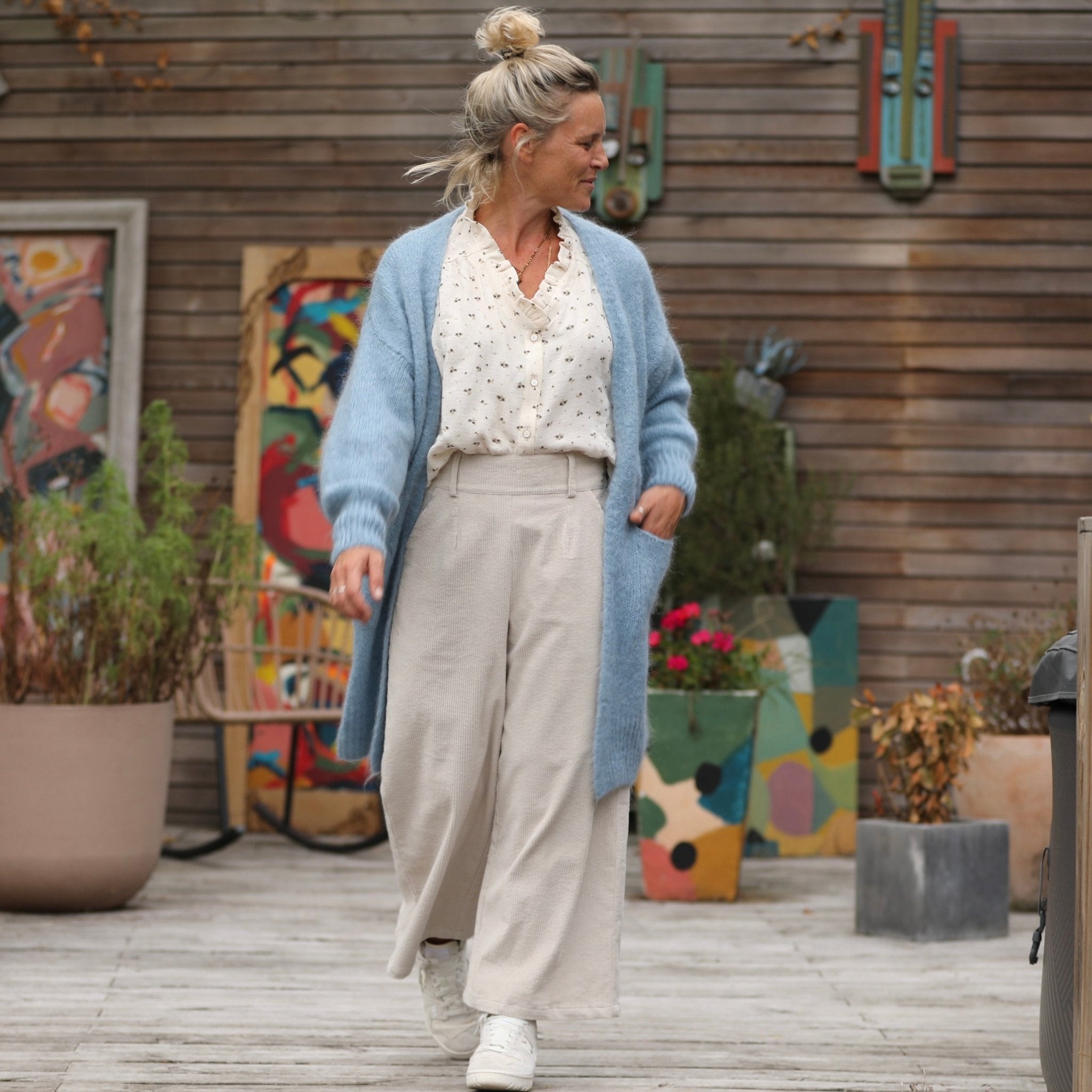 Naïs – Gilet mi-long enveloppant, fabriqué en Italie. Ses lignes généreuses et son allure décontractée en font une pièce facile à porter au quotidien. Sa coupe ample s’adapte avec élégance à toutes les silhouettes, du XS au XXL, pour allier confort et style sans compromis. Deux poches pratiques viennent compléter son design.