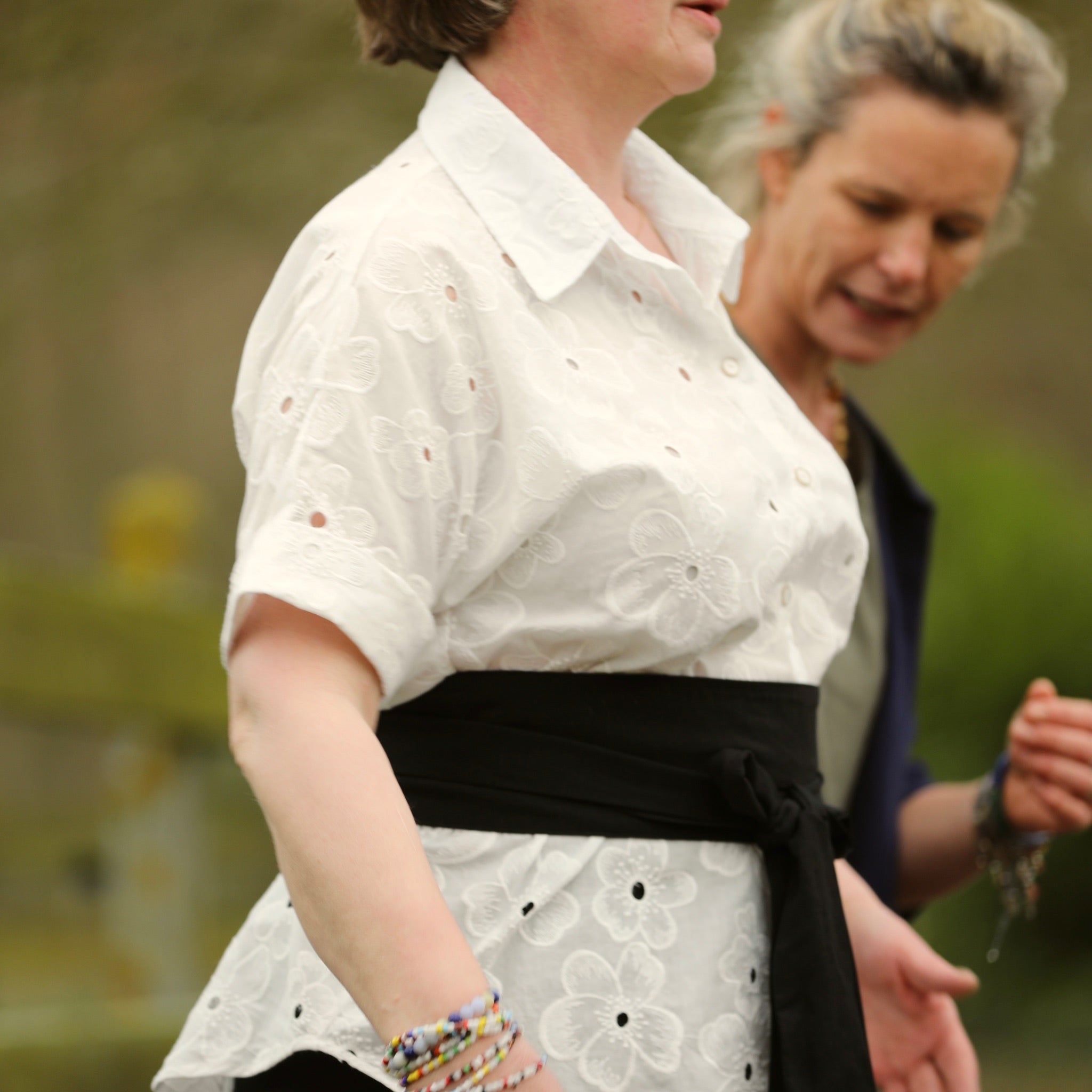 Confectionnée dans un coton broderie ajourée blanche 100% coton léger, respirant et délicatement texturé, cette matière offre un tombé naturel avec un jeu subtil de transparence. La broderie florale ton sur ton apporte élégance et raffinement, tandis que le blanc lumineux sublime la silhouette avec douceur.