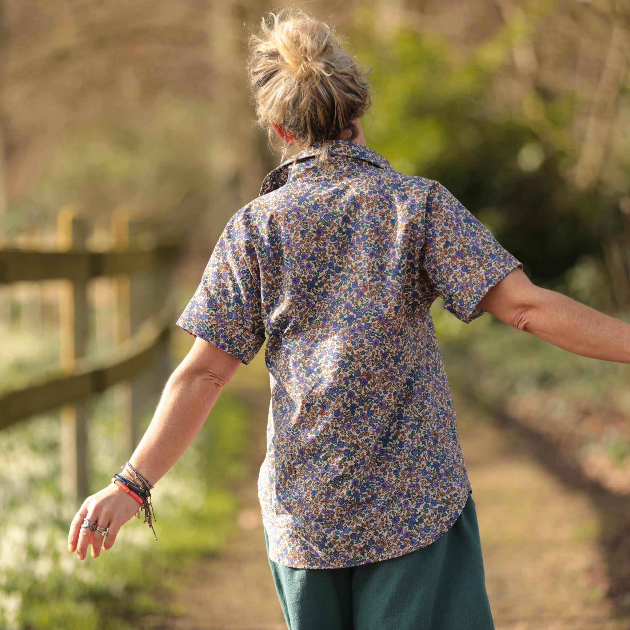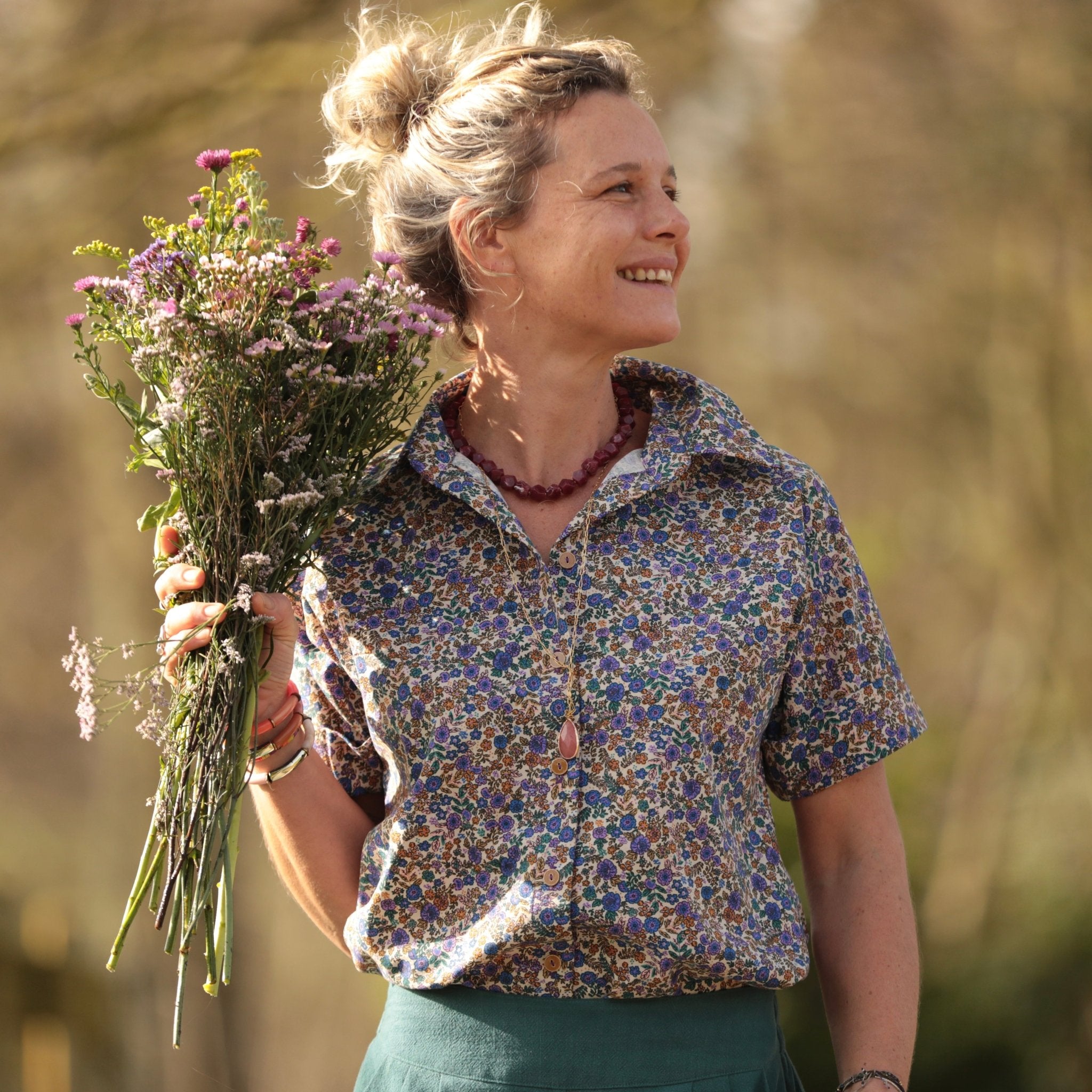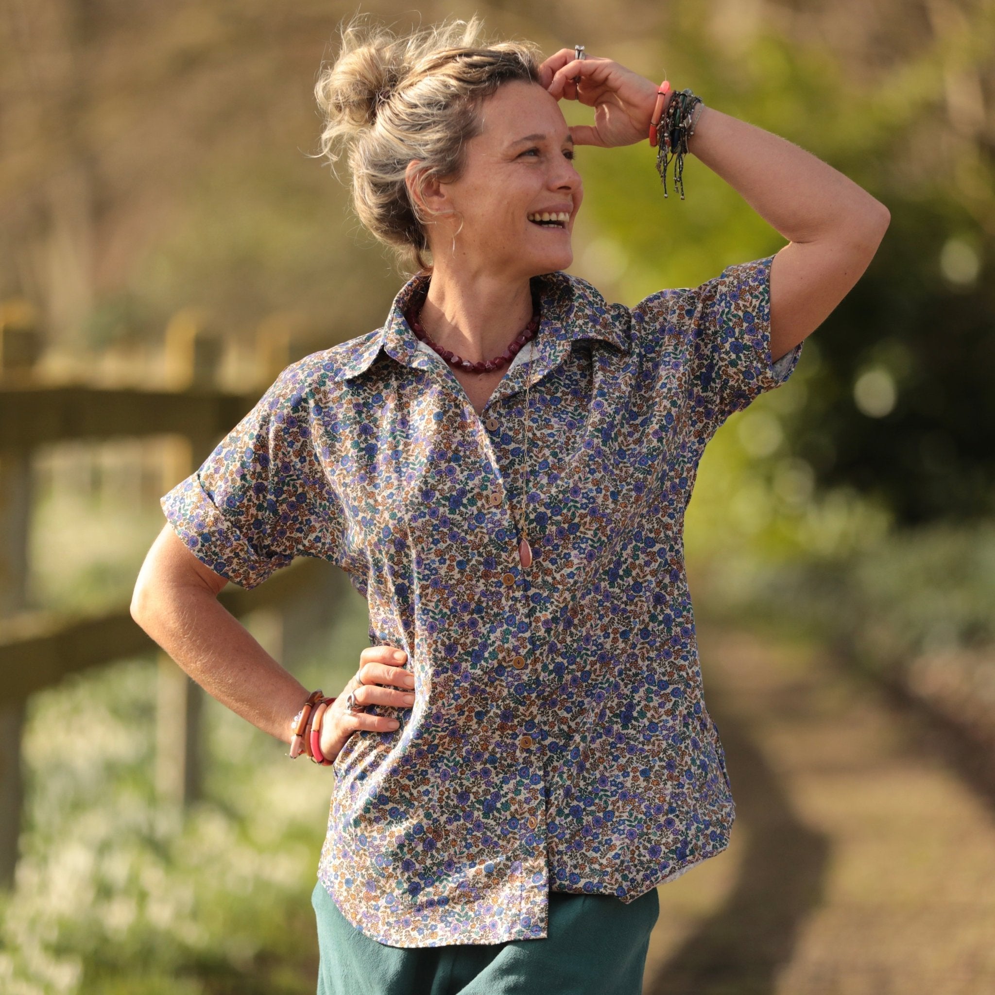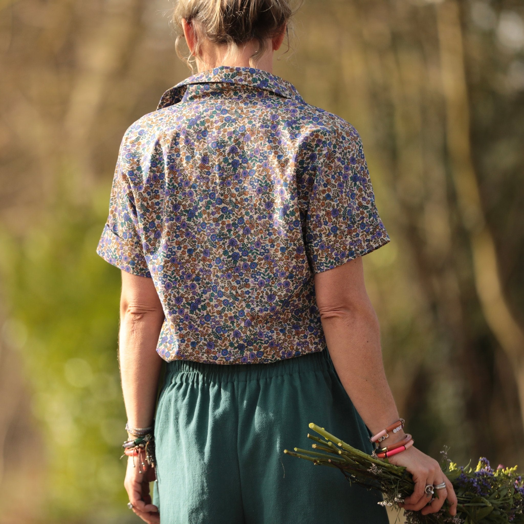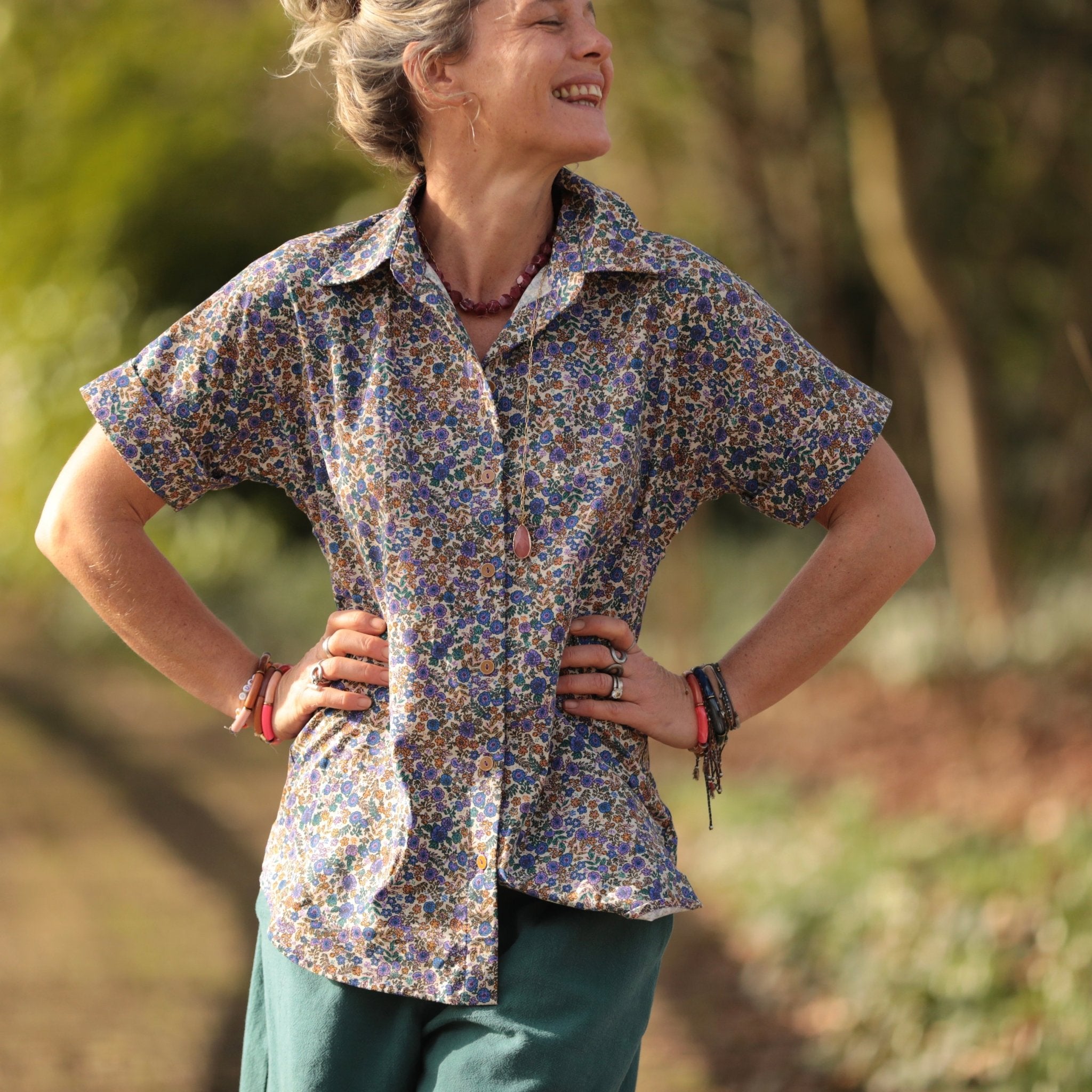 La chemise Honorine se porte facilement avec un jean clair pour une allure lumineuse, un pantalon écru pour une harmonie douce ou une jupe fluide pour une silhouette plus romantique. Son motif floral apporte une touche de couleur subtile au vestiaire.