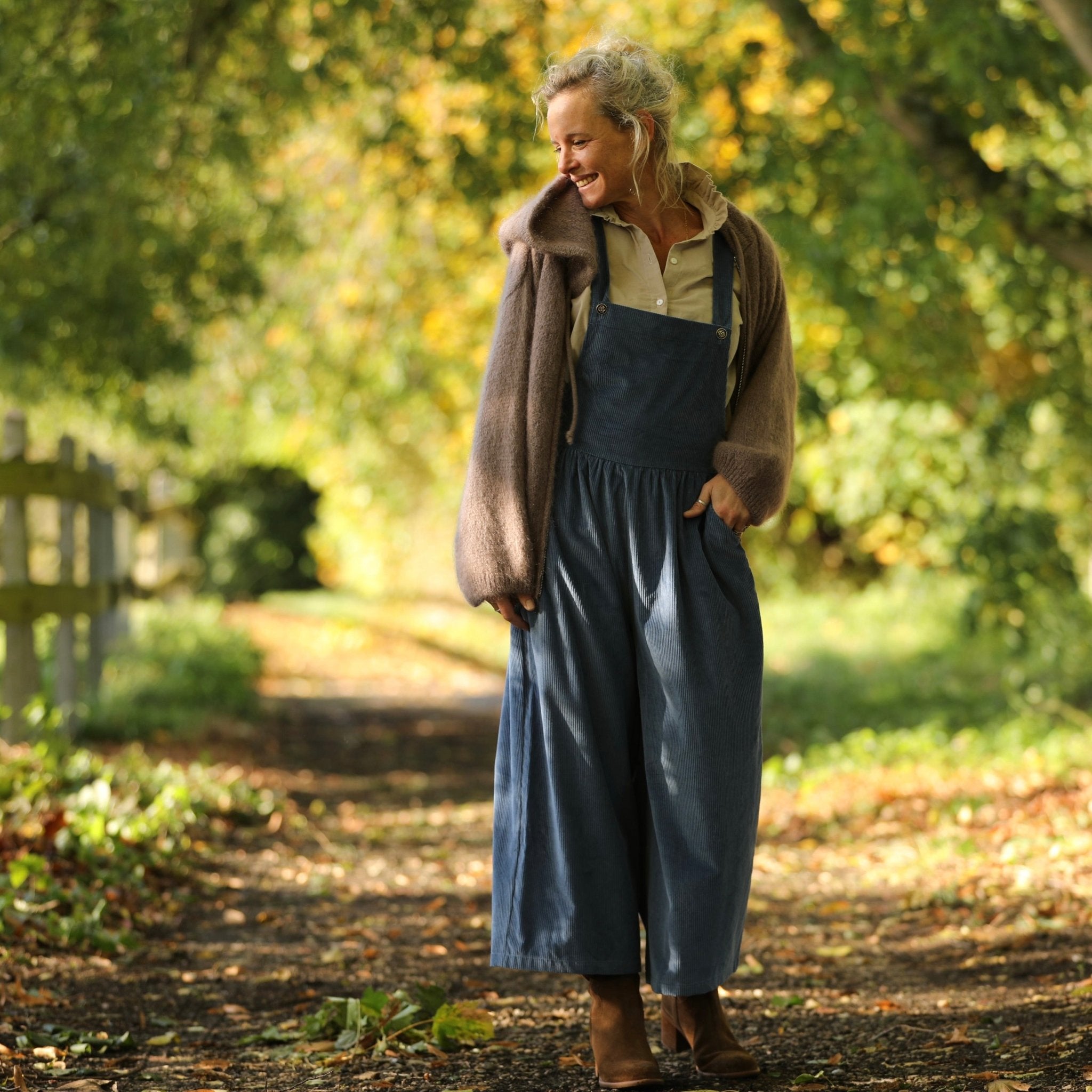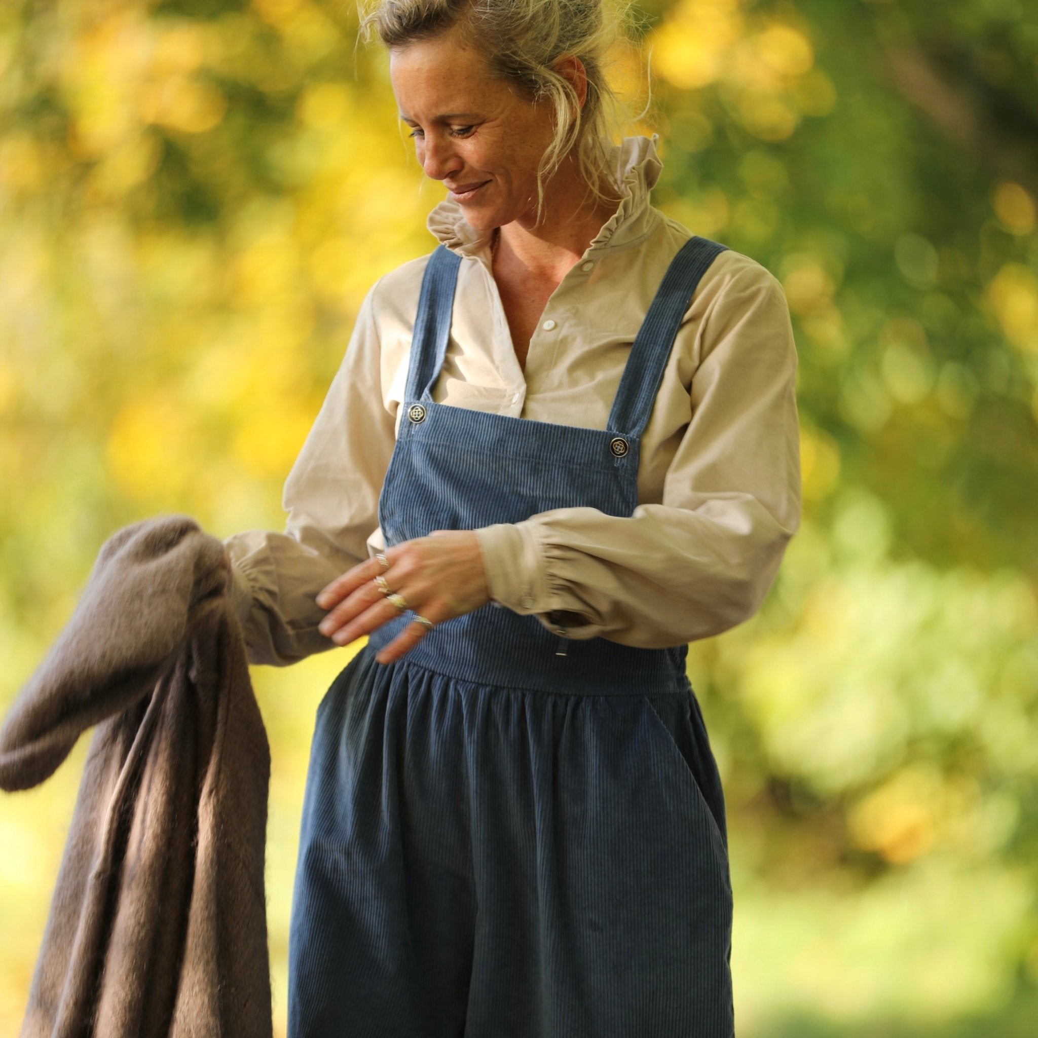 Salopette Isaure - velours côtelé bleu officier - Quintessence