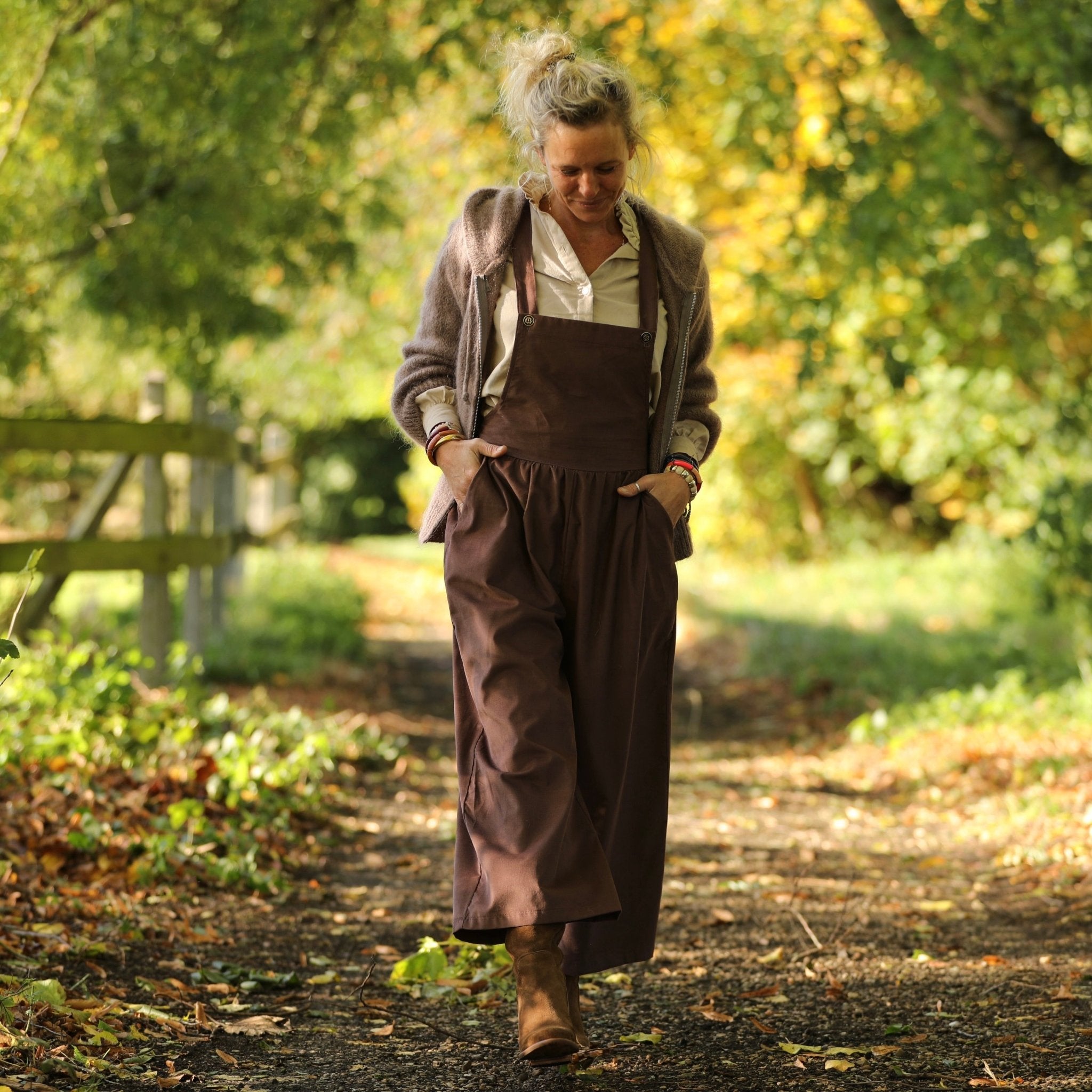 Deux poches italiennes, des boutons sur le plastron et des finitions soignées font de cette salopette une pièce à la fois pratique et élégante. Réalisée dans un velours milleraies moka d’une grande douceur, elle allie chaleur et raffinement pour la saison.