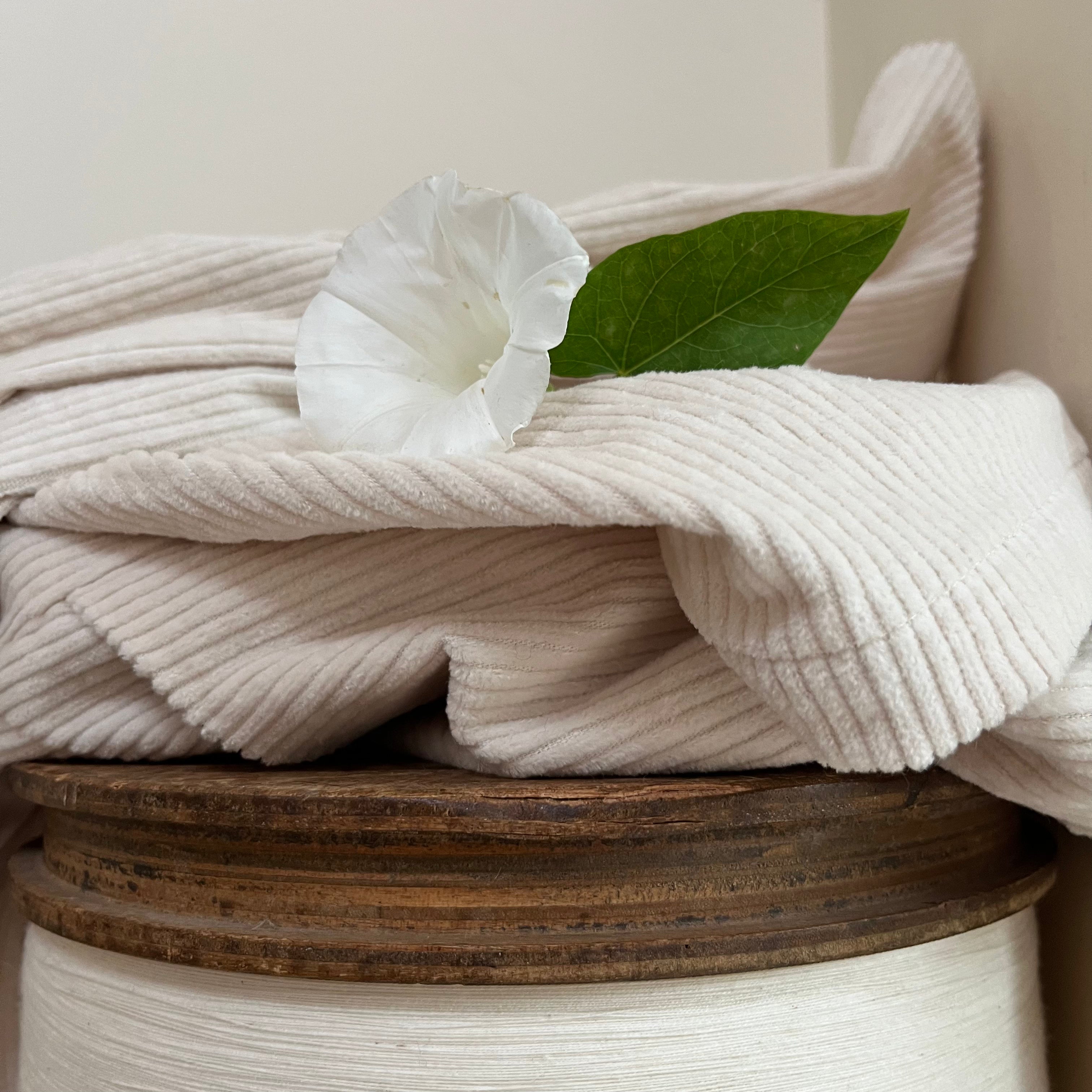 Le velours : lavage à basse température (30°). Si le tissu est froissé, vous avez la possibilité d’utiliser de la vapeur d’eau (défroisseur à main ou fer à repasser mode vapeur), il ne faut pas coller le fer contre le velours et le tenir à environ 5 cm de votre tissu. Un séchage à plat est recommandé.