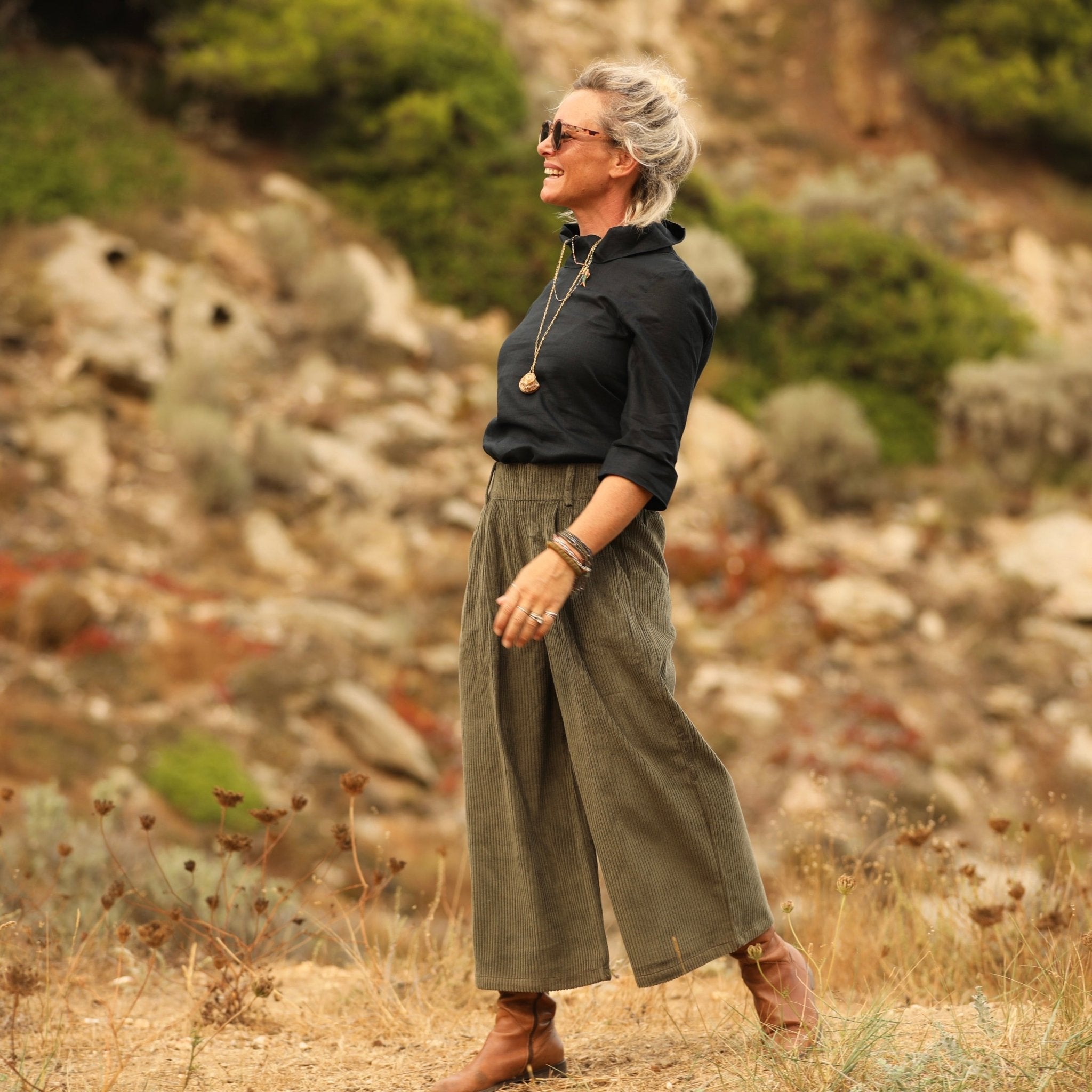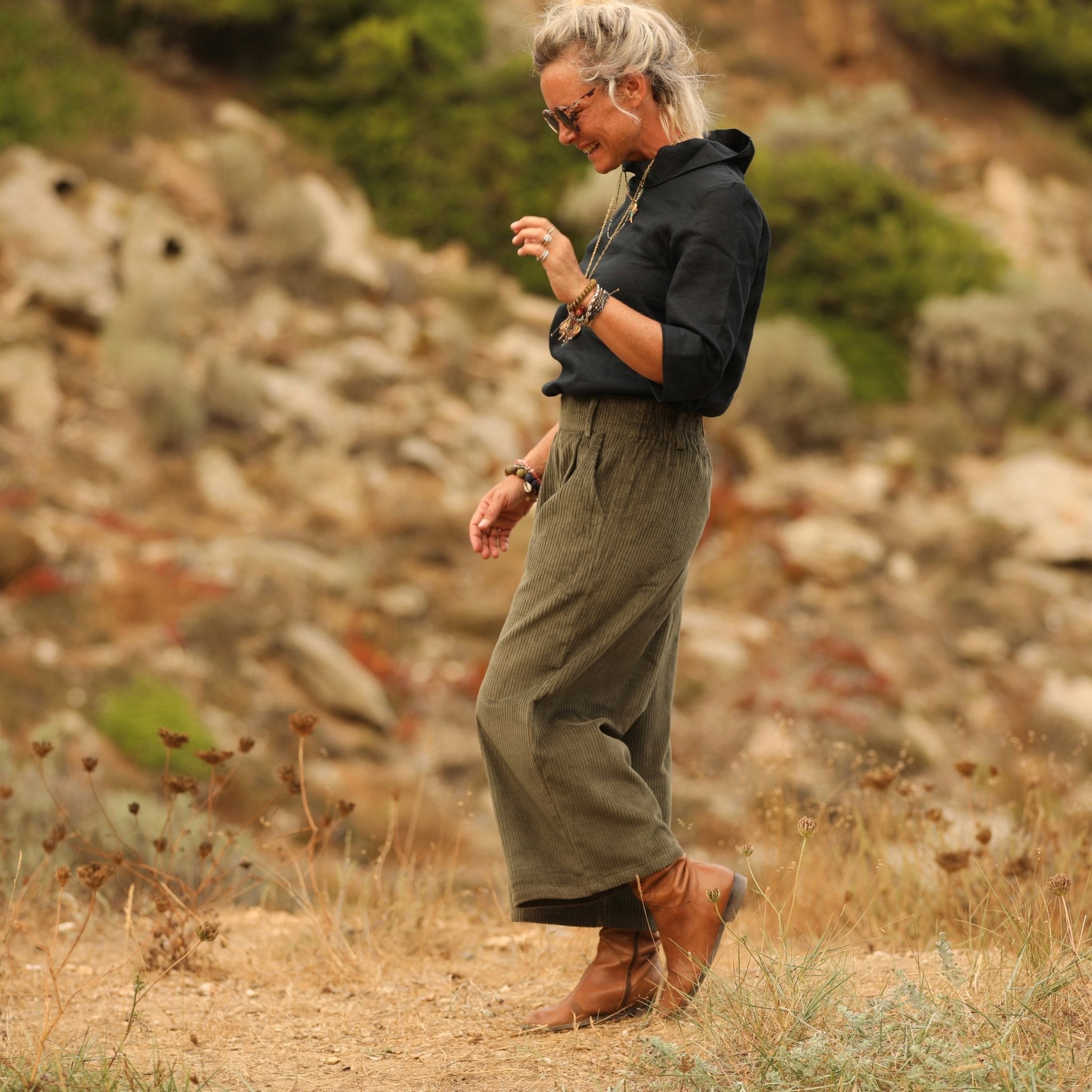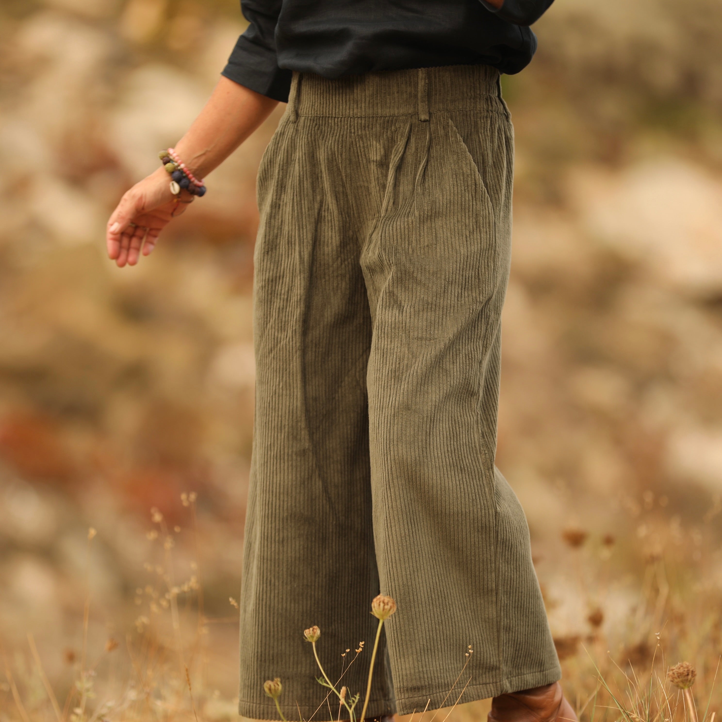 Jupe culotte Margot - velours côtelé kaki - Quintessence
