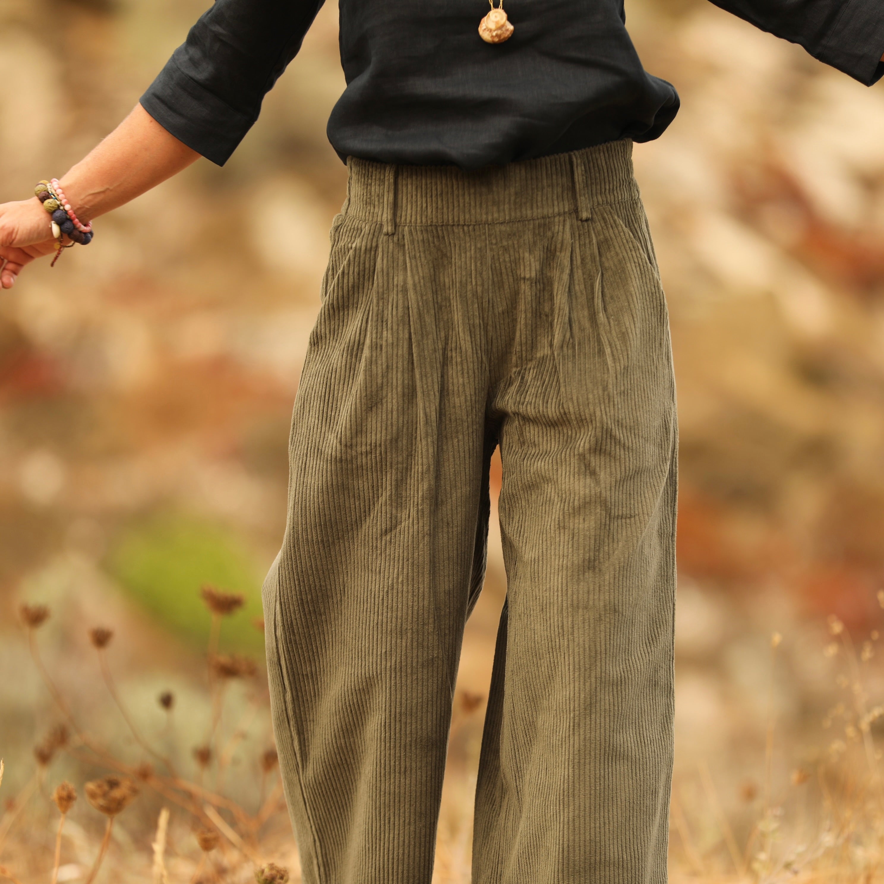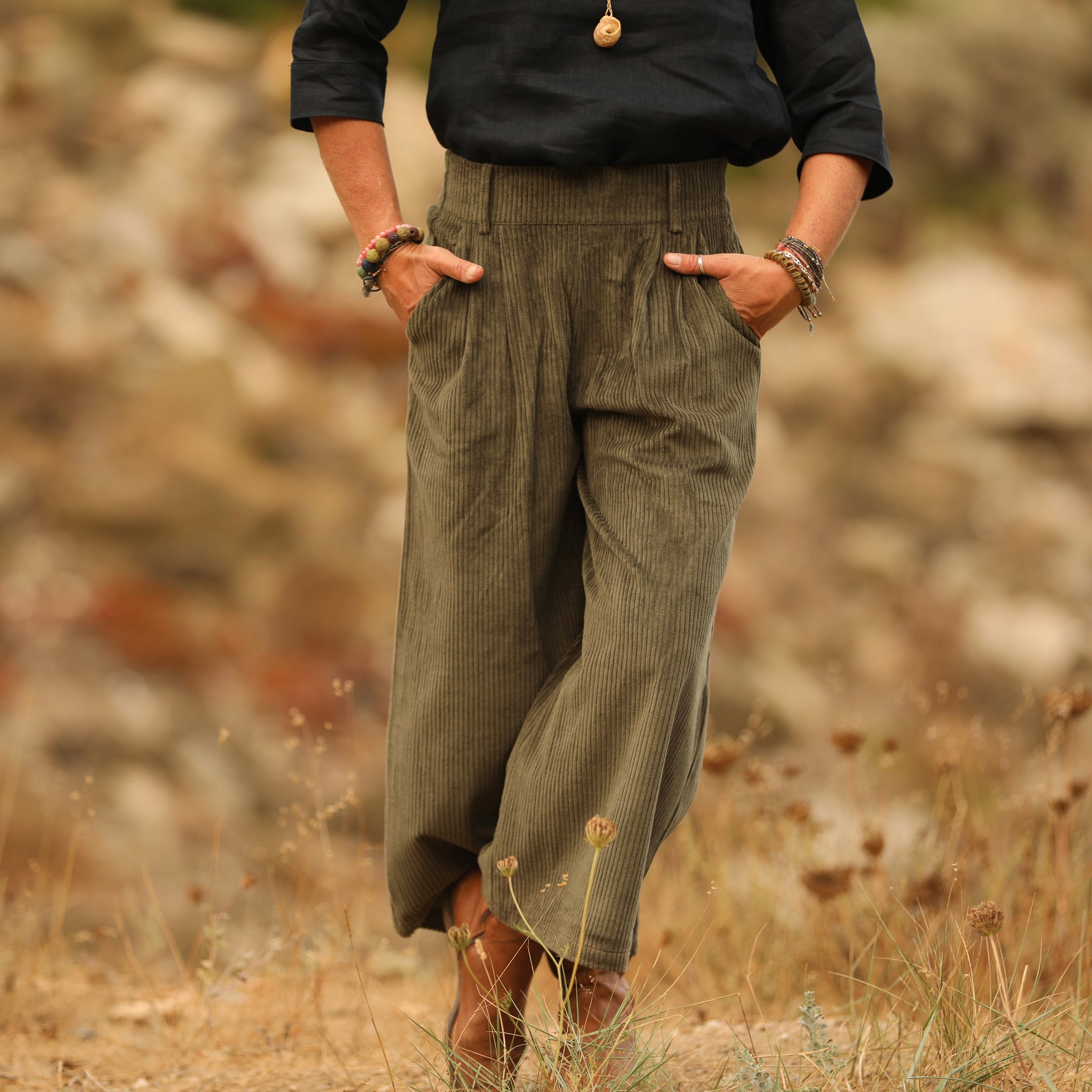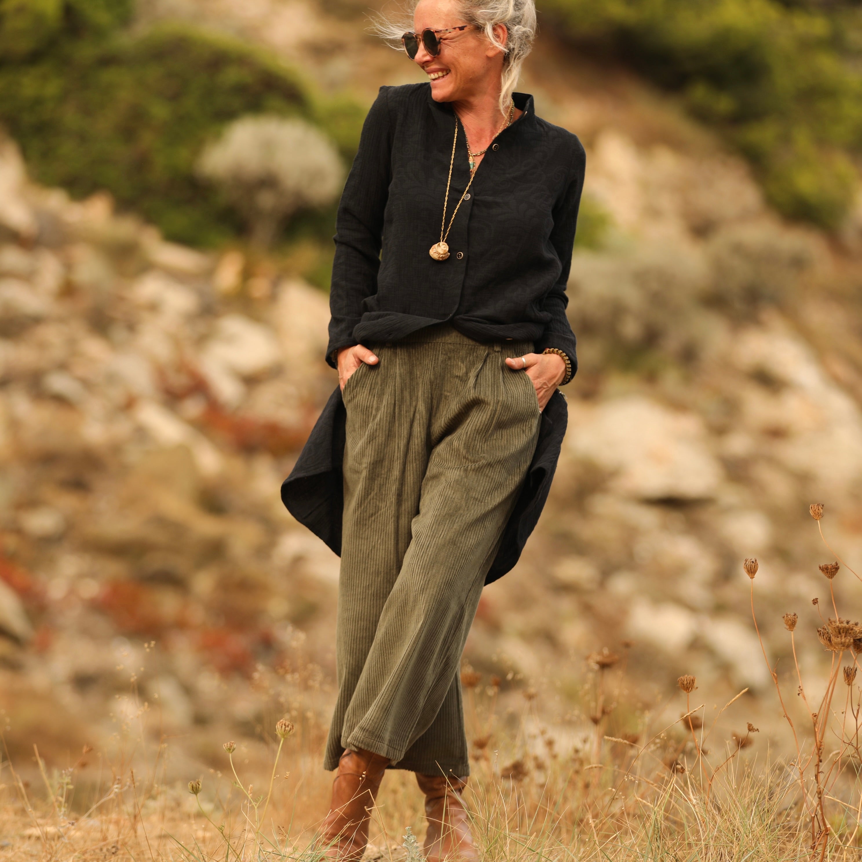 Jupe culotte Margot - velours côtelé kaki - Quintessence