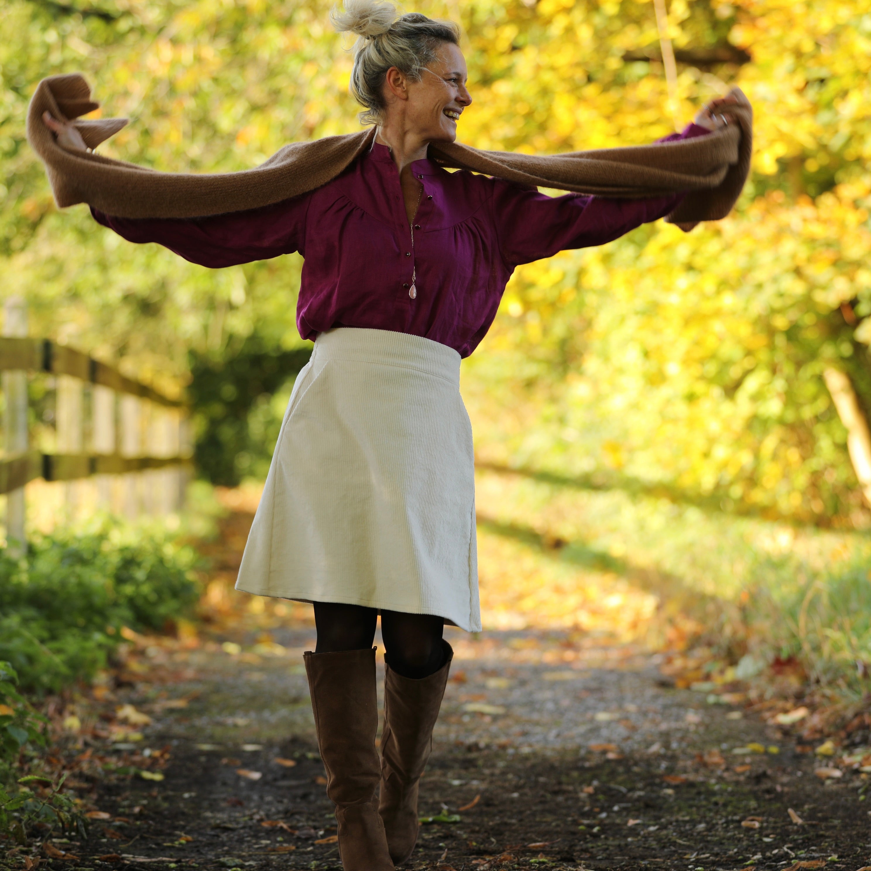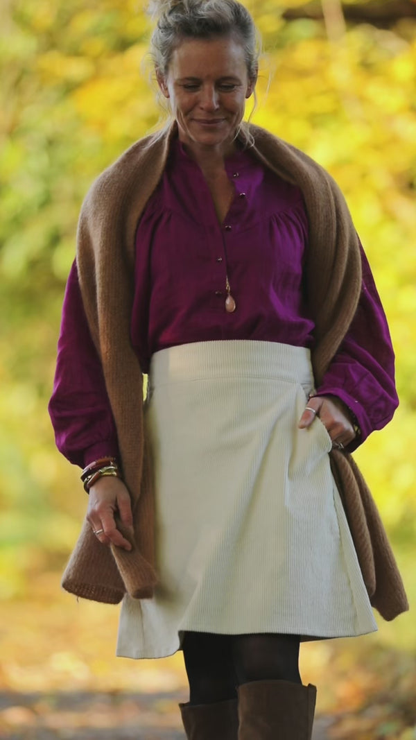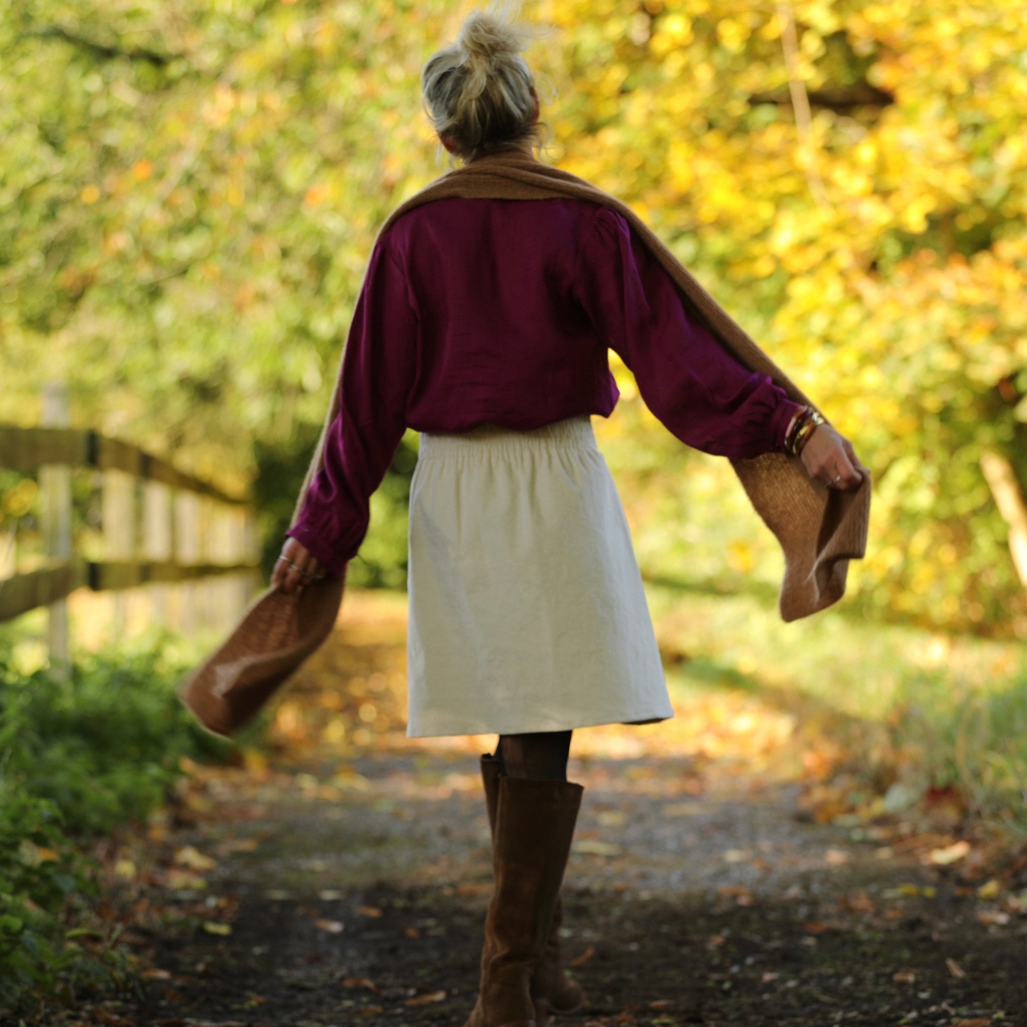 Fabriquée en France dans notre atelier à Roubaix, la jupe Maya incarne le savoir-faire Quintessence et l’amour des belles matières.
