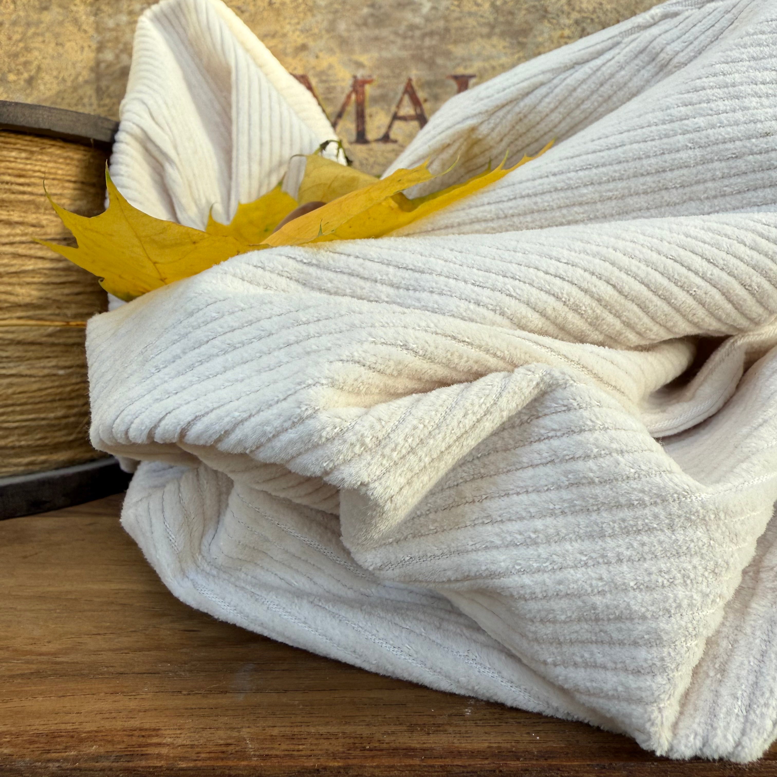 Velours côtelé ivoire — 97 % coton, 3 % élasthanne.