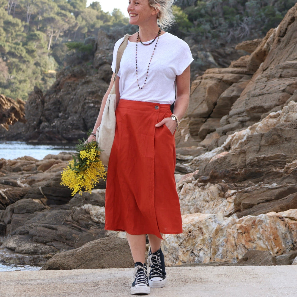 Jupe portefeuille Alexia terre de Sienne