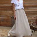 Voici Rachelle, notre jolie jupe élastiquée, longue et fluide.