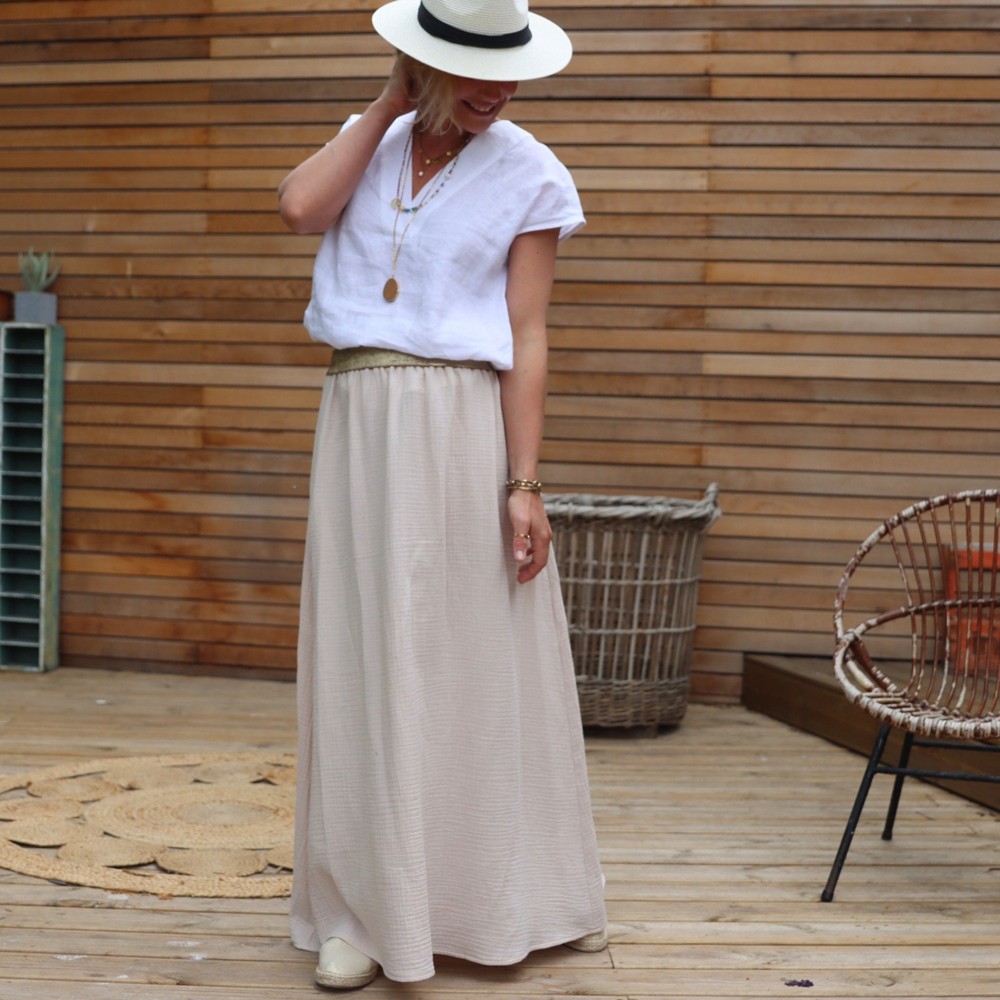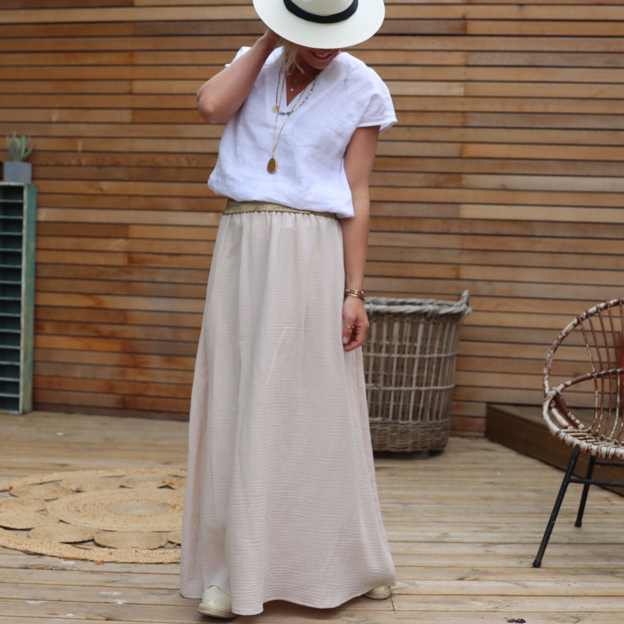 Jupe Rachelle double gaze de coton ficelle - 1m de hauteur