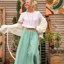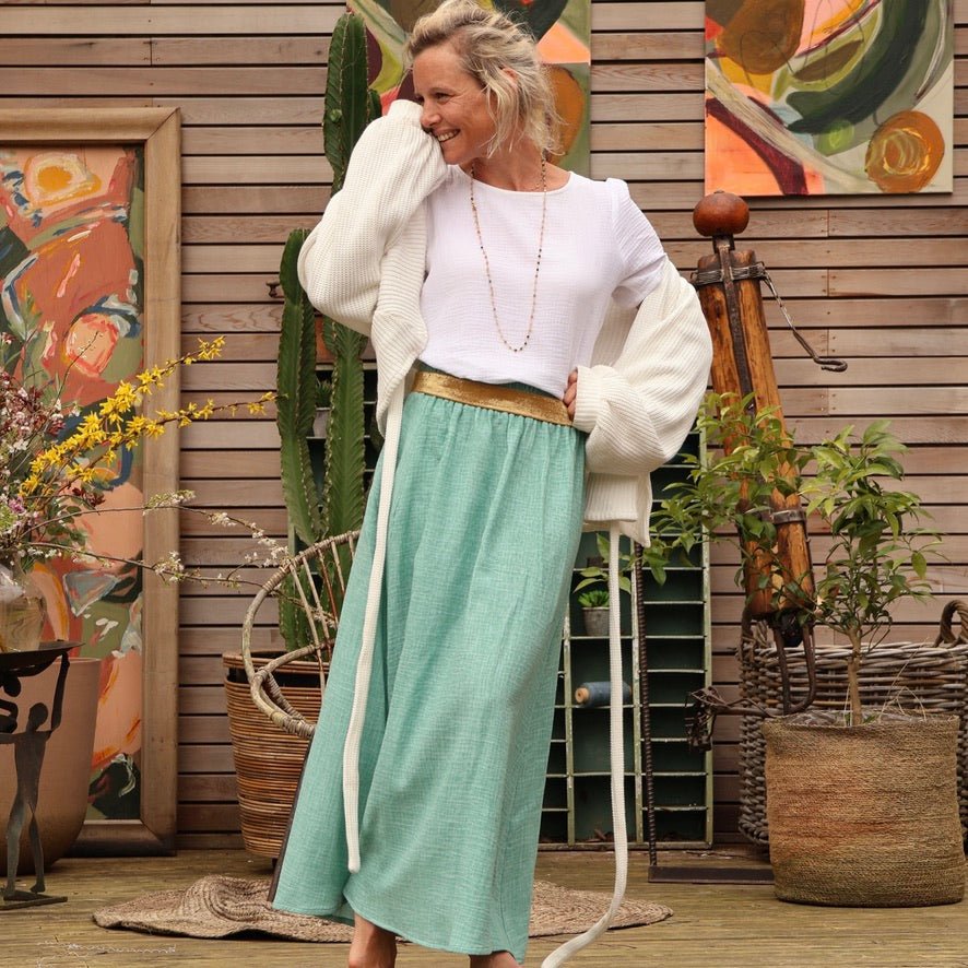 Jupe Rachelle double gaze de coton tie & dye vert doux - 90cm de hauteur