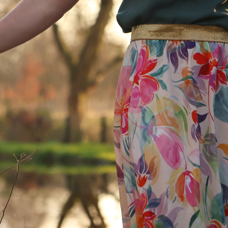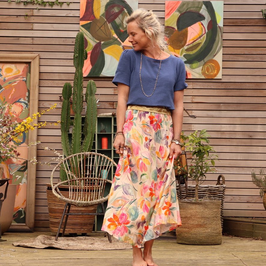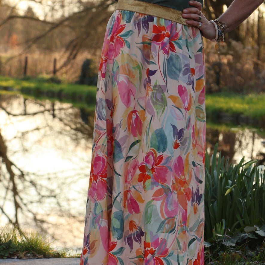Jupe Rachelle viscose fleuri pastel - 90cm de hauteur - Quintessence