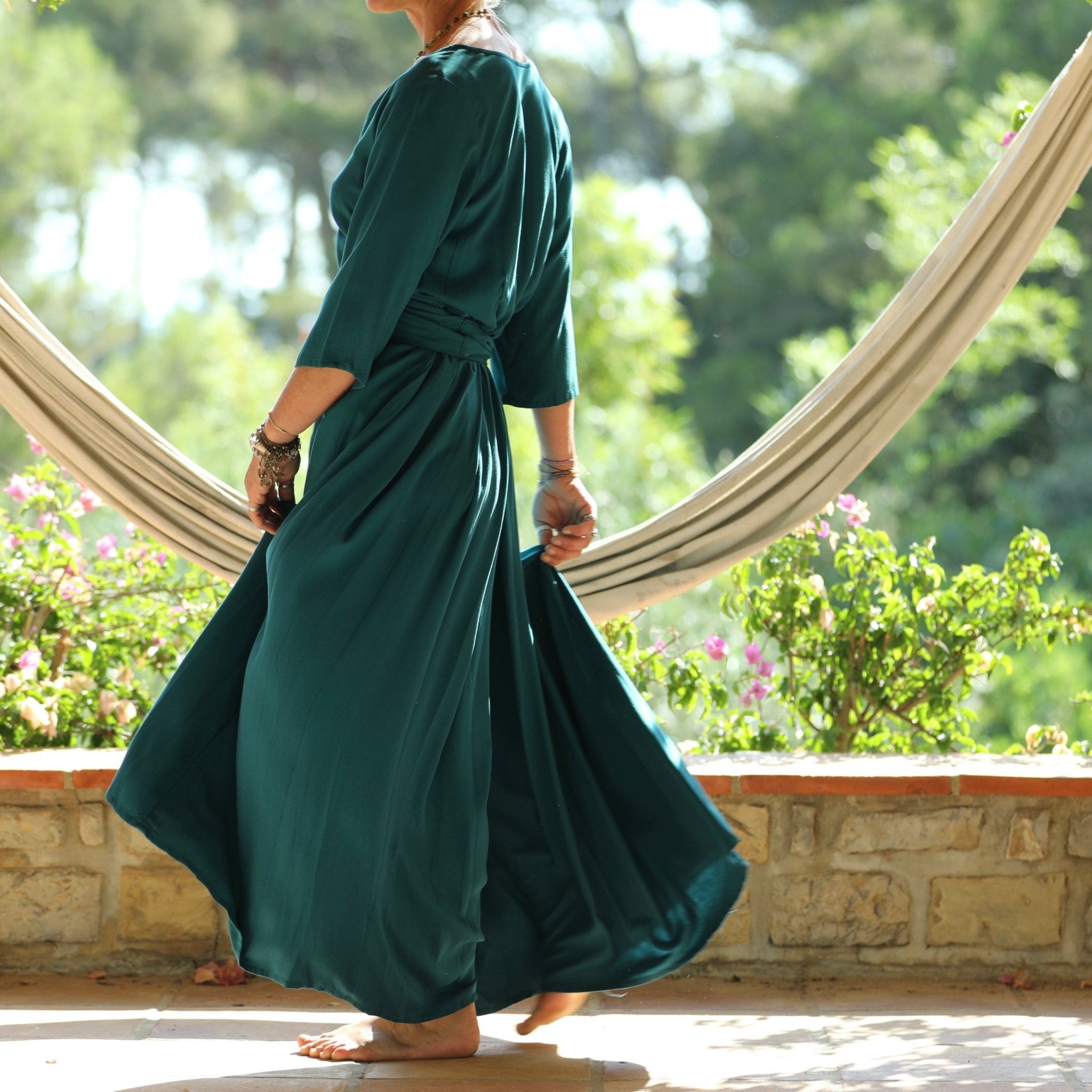 La combinaison India est d'une élégance raffinée, avec un haut chic et cintré qui mélange les traits d'une robe avec le confort d'un pantalon large à plis creux offrant une belle ampleur.