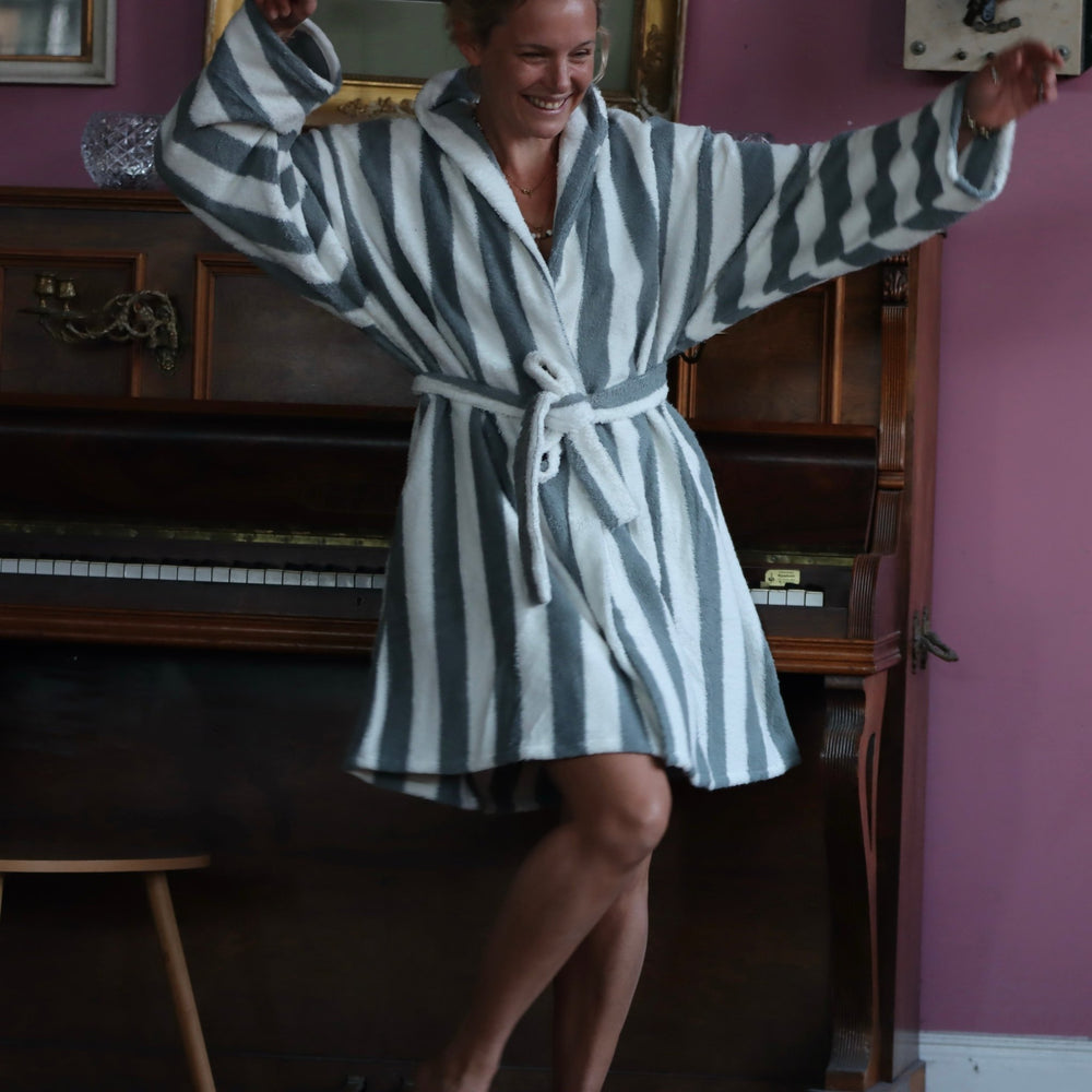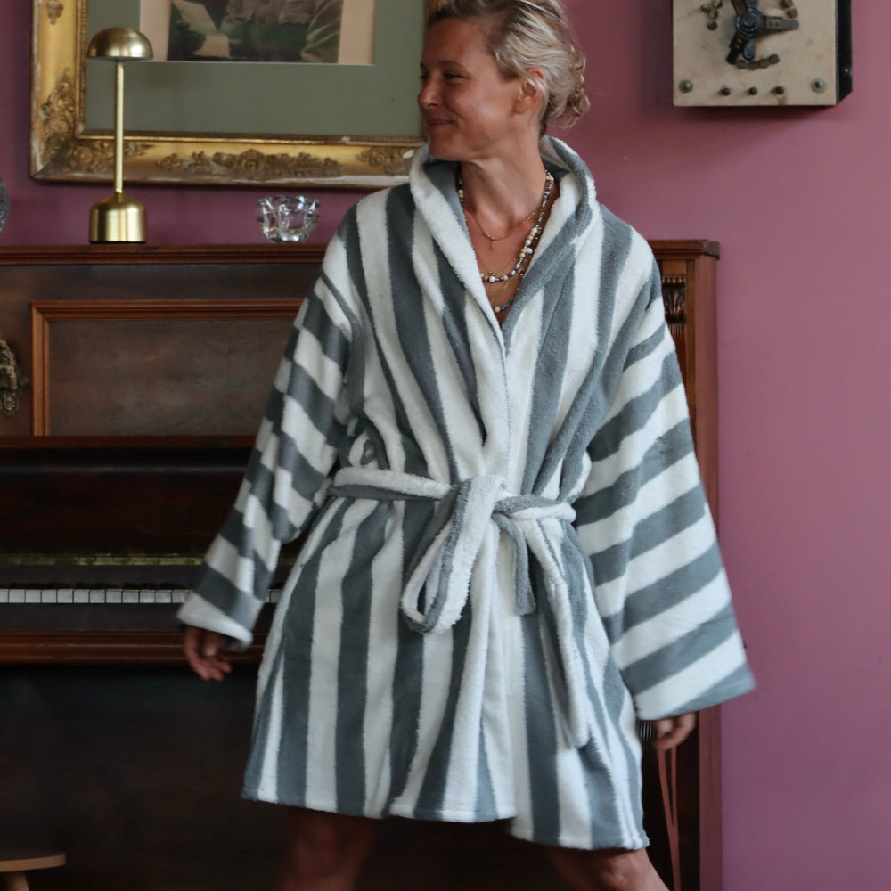 Un col châle, des manches kimono, une coupe midi, deux poches bien pratiques, c'est Flélix !