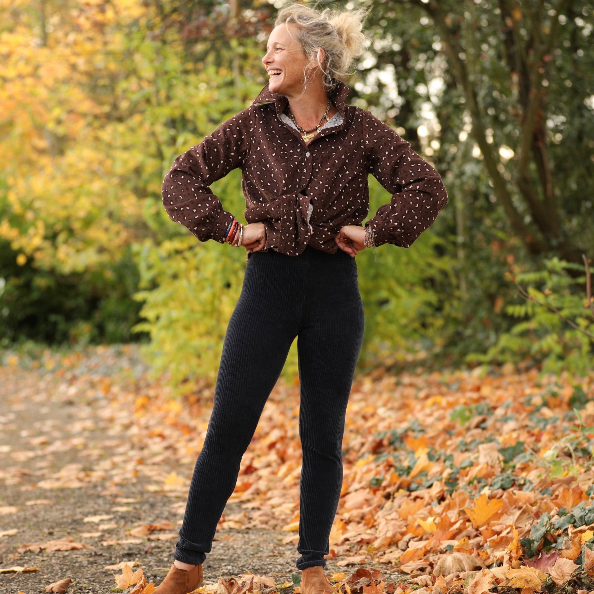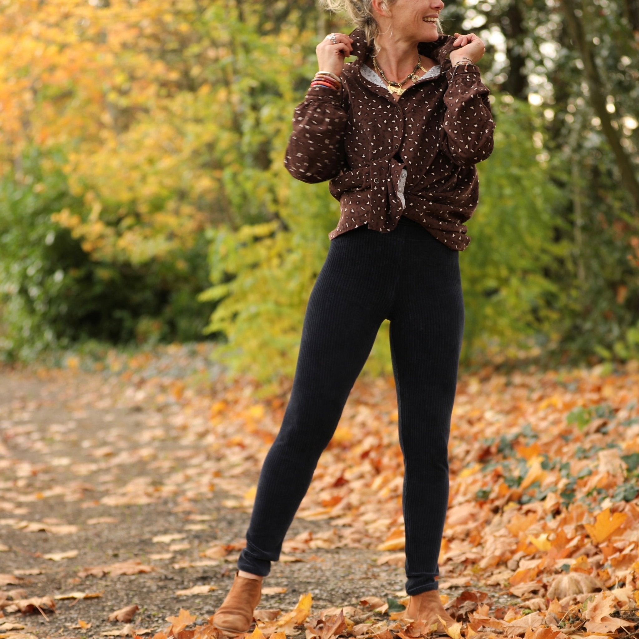 Le legging Léni se distingue par sa ceinture élastique souple et sa matière stretch qui épouse la silhouette avec légèreté. Le velours côtelé marine apporte profondeur et élégance, pour un look à la fois décontracté et raffiné. Un indispensable du quotidien, facile à associer et agréable à porter.