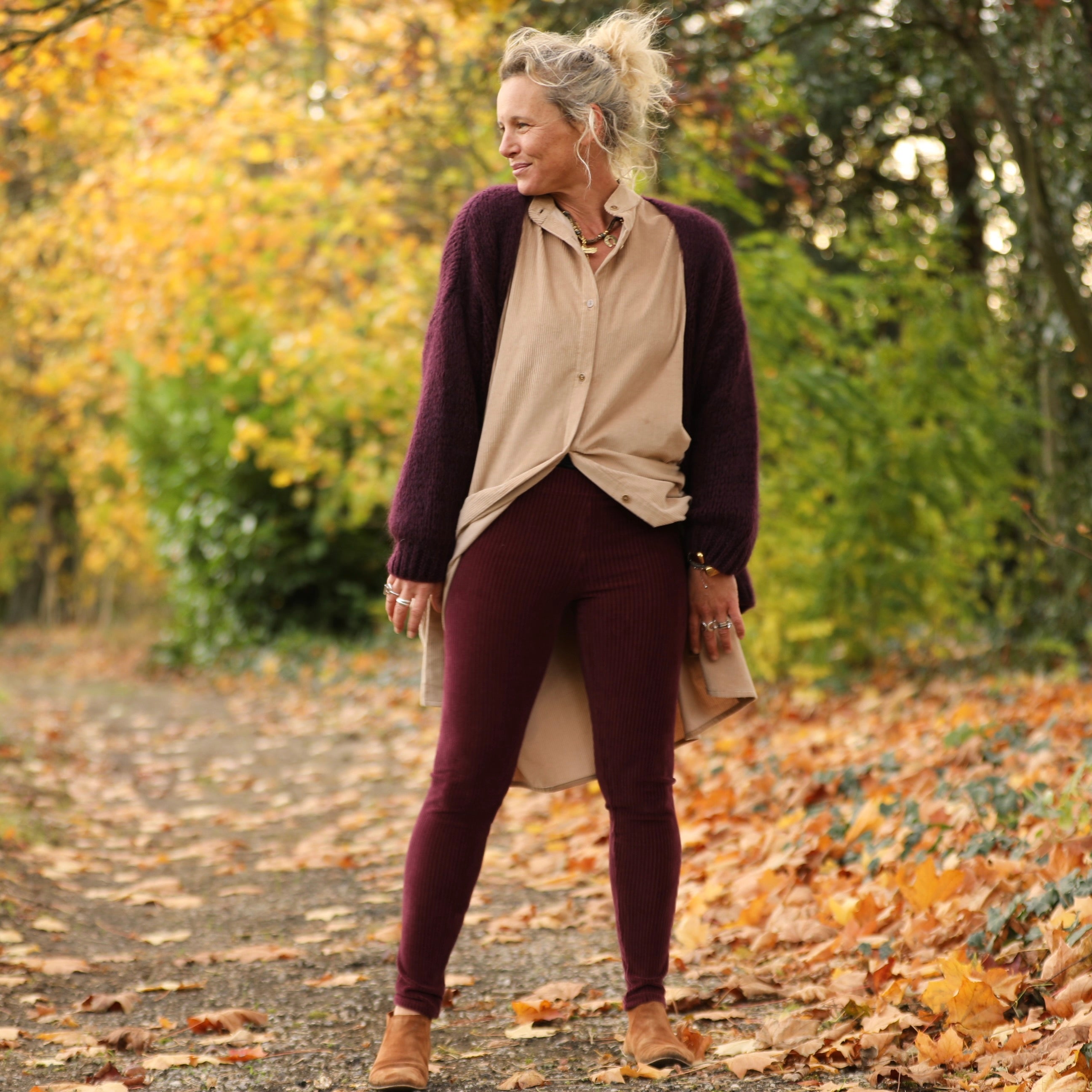 Le legging Léni se distingue par sa ceinture élastique souple et sa matière stretch qui épouse délicatement la silhouette. Son velours côtelé violine offre une touche lumineuse et raffinée, idéale pour la saison. Un modèle à la fois chic et pratique, facile à associer à vos tuniques ou chemises préférées.