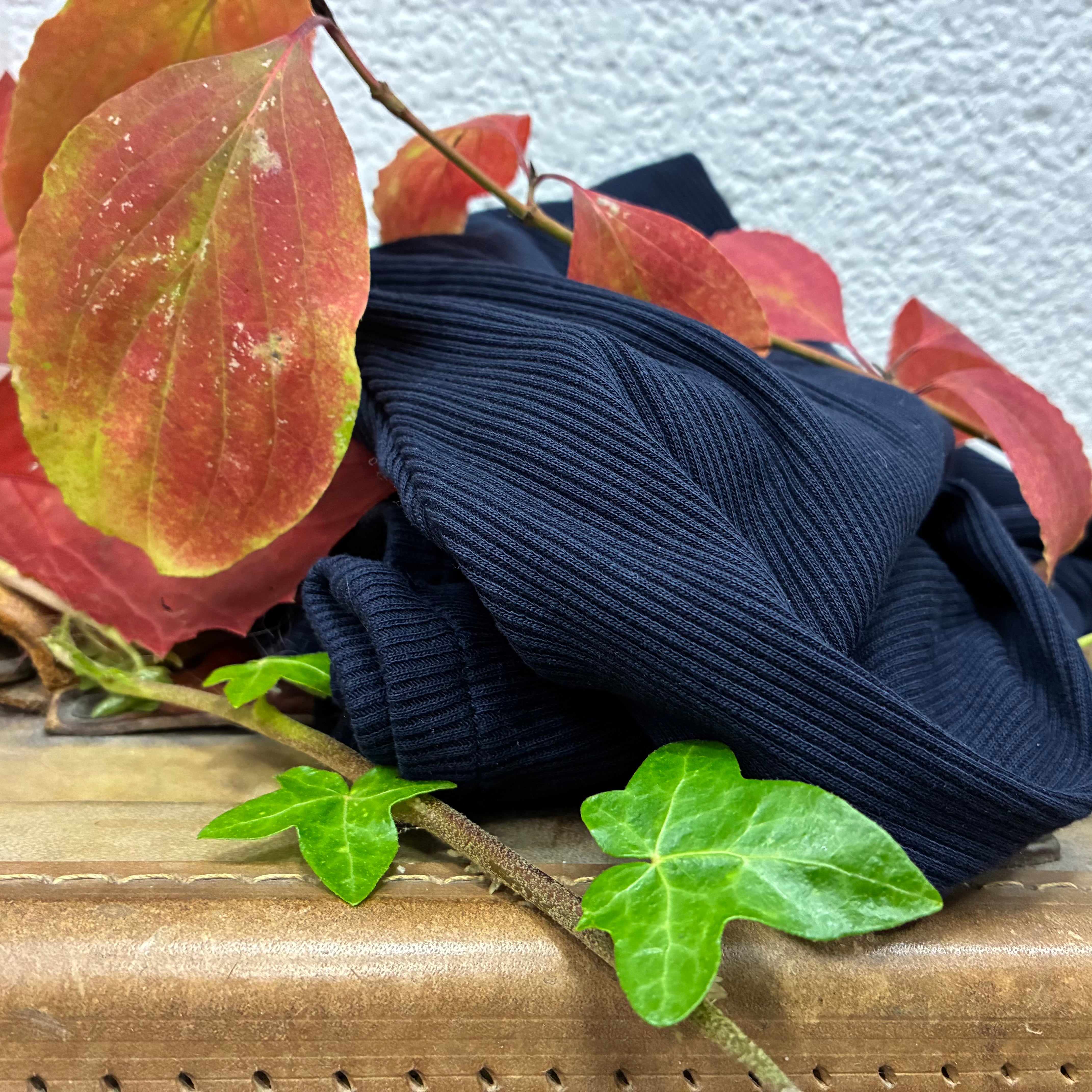 Piqué de coton marine — 95 % coton, 5 % élasthanne.