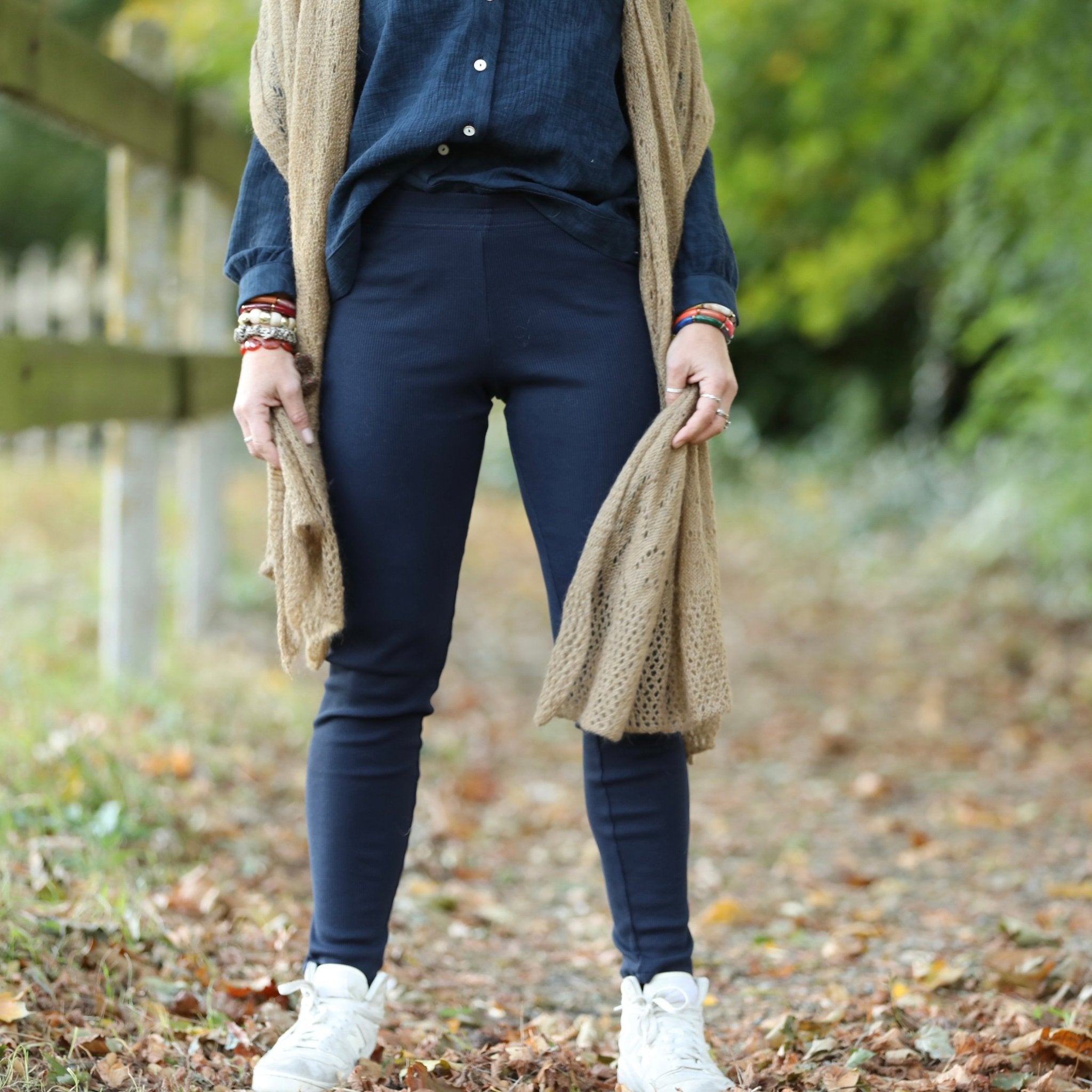 Le legging Léni en maille côtelé marine est un essentiel alliant confort, maintien et élégance. Sa matière texturée, légèrement stretch, offre un tombé structuré et agréable à porter. Sa ceinture intégrée de 4 cm assure un maintien optimal sans comprimer, pour un confort tout au long de la journée.