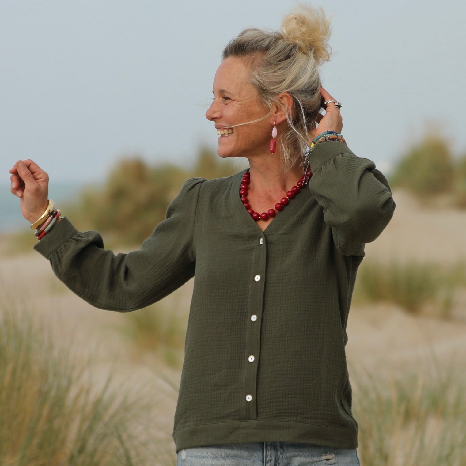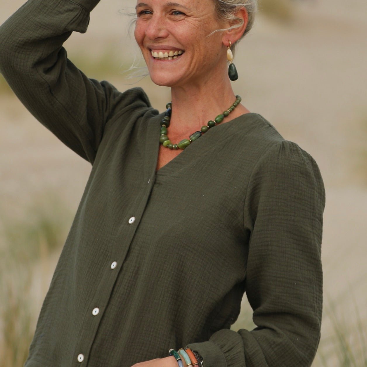 Blouse Léocadie - double gaze de coton kaki