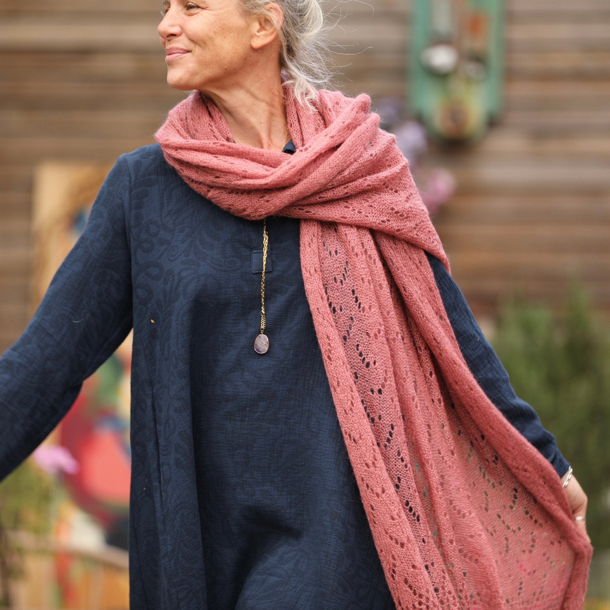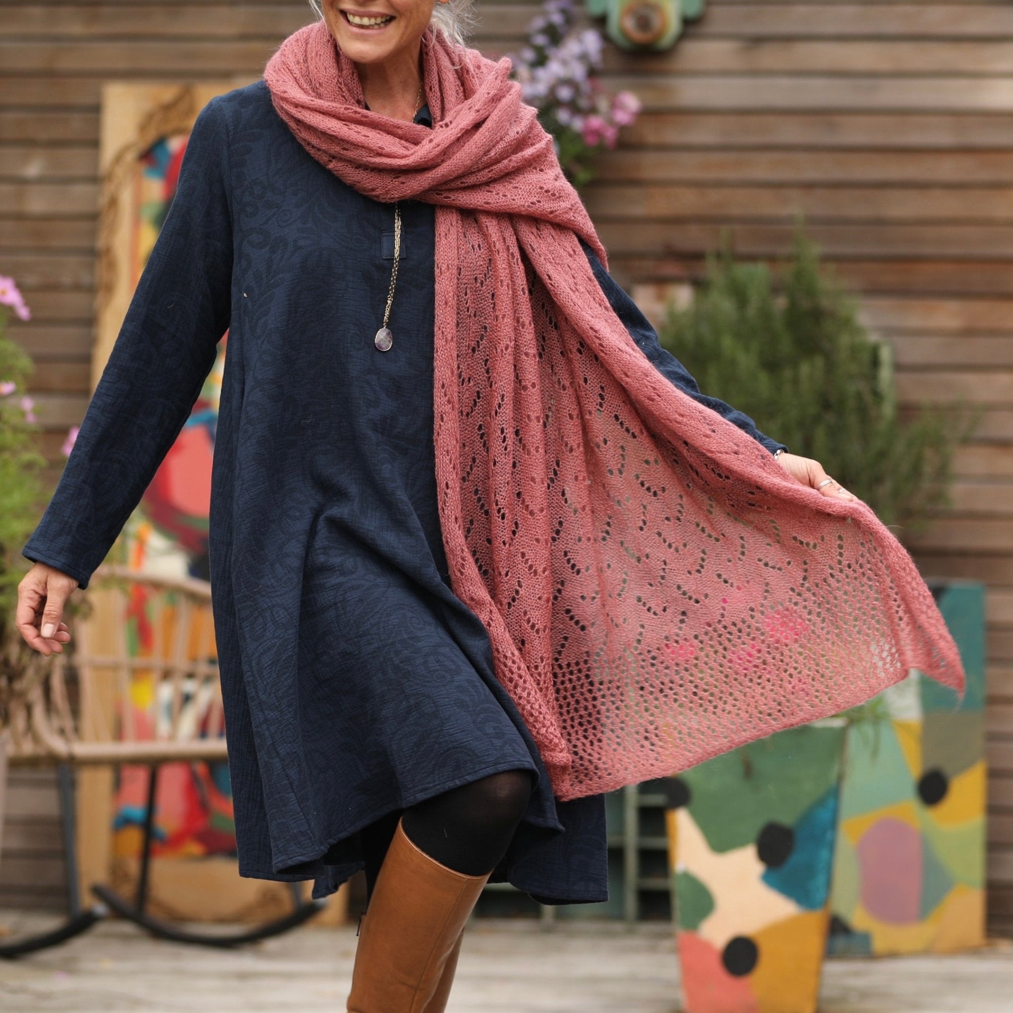 Léonie est une écharpe à la maille ajourée, offrant une belle ampleur et un toucher doux. Sa texture délicate évoque la dentelle, tout en intégrant une touche de laine pour plus de chaleur et de confort. Une pièce raffinée qui accompagne aussi bien les tenues décontractées que les silhouettes plus habillées.
