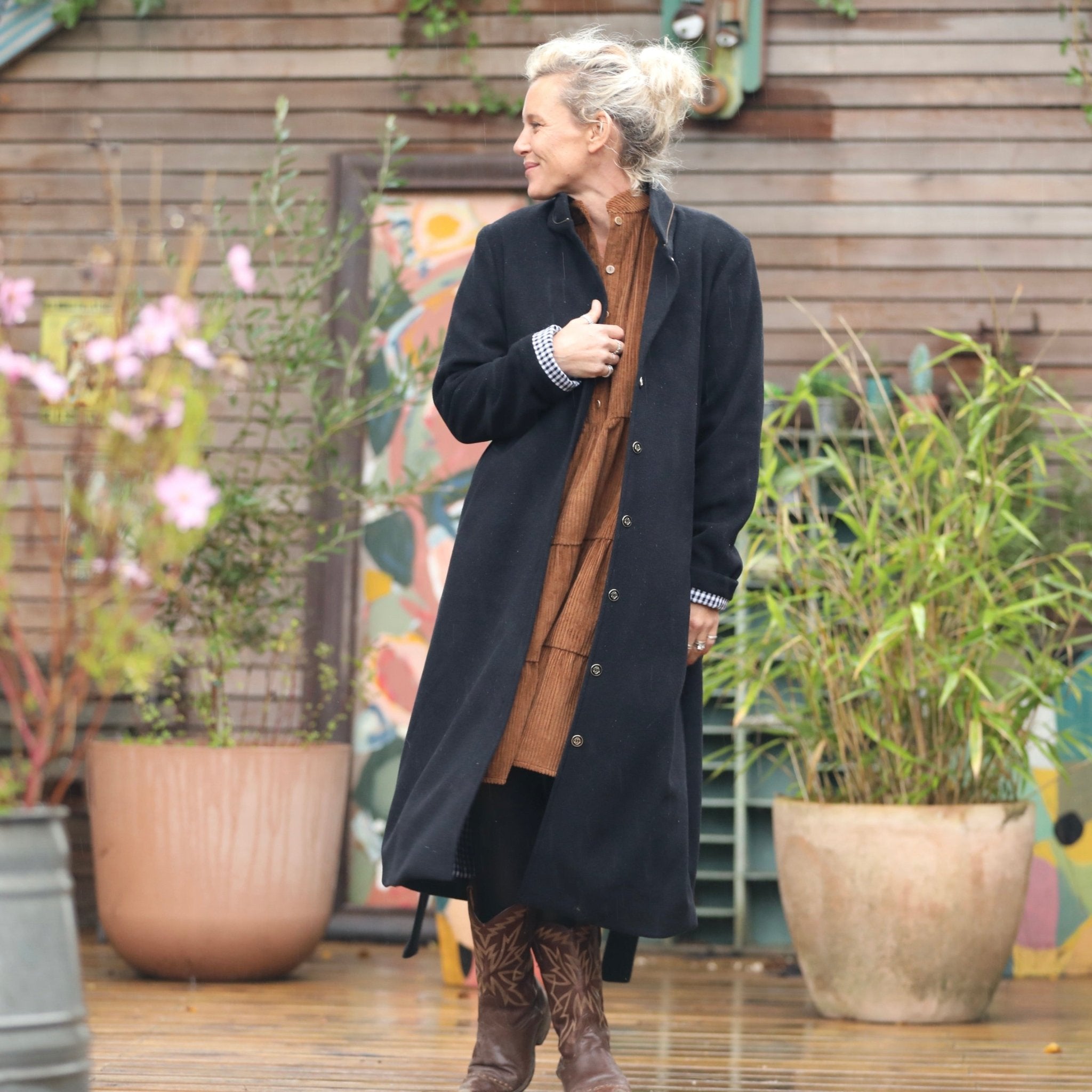 Ce manteau peut être porté de façon ample ou ajustée, selon vos préférences.